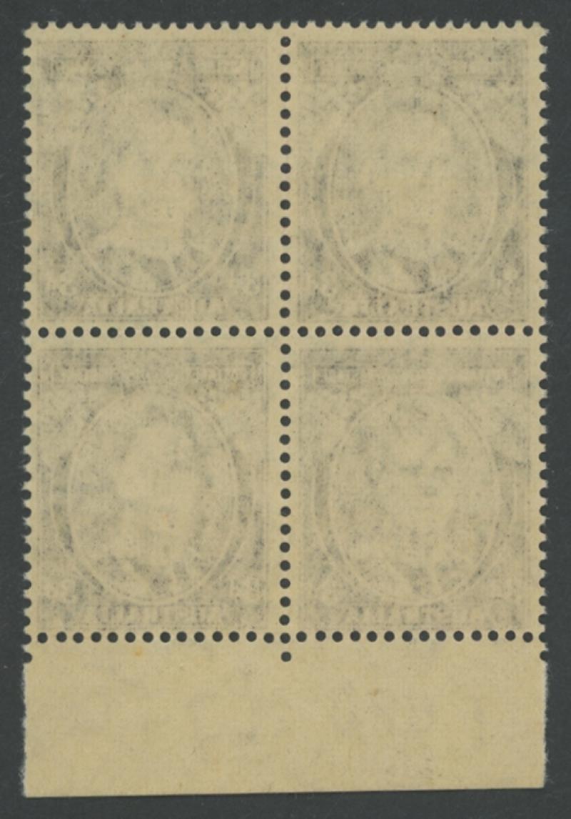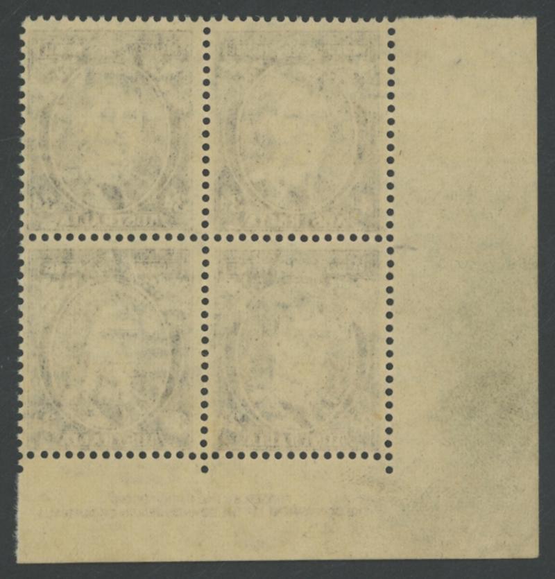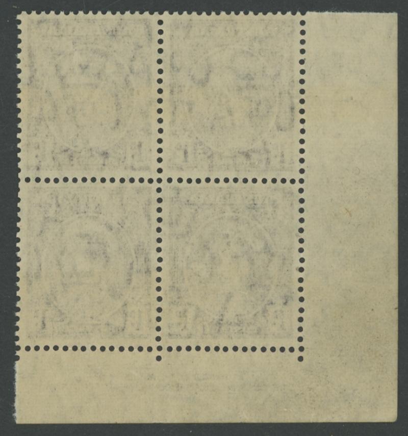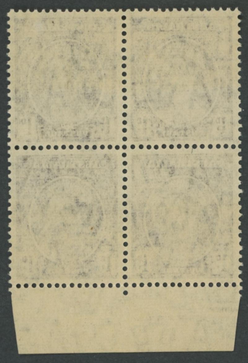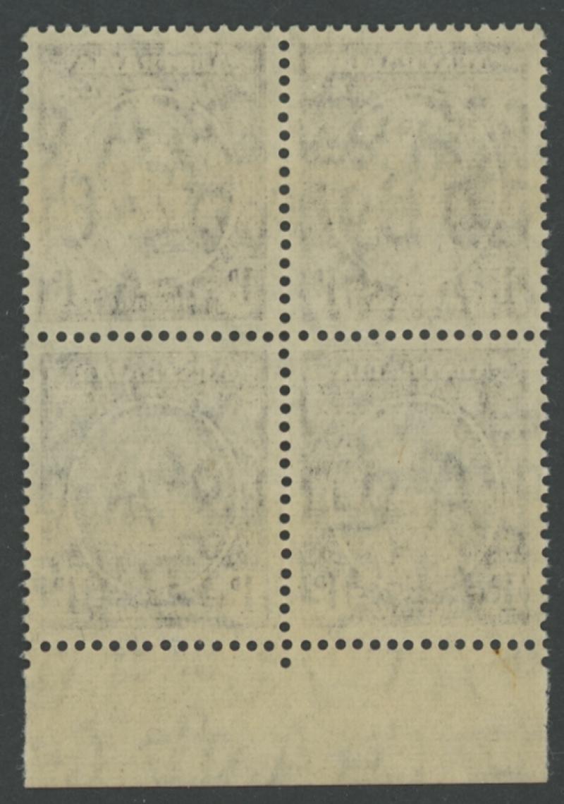 1530 nh imageTHREEPENCE WITH OVERPRINT IN BLACK: 3d in Black By Authority Imprint block of 4 from the lower-left of the sheet ACSC J3PP(2)Az, unmounted, Cat $2250. Absent from Sybrand Bakker's collection. (Image1) (Image2)