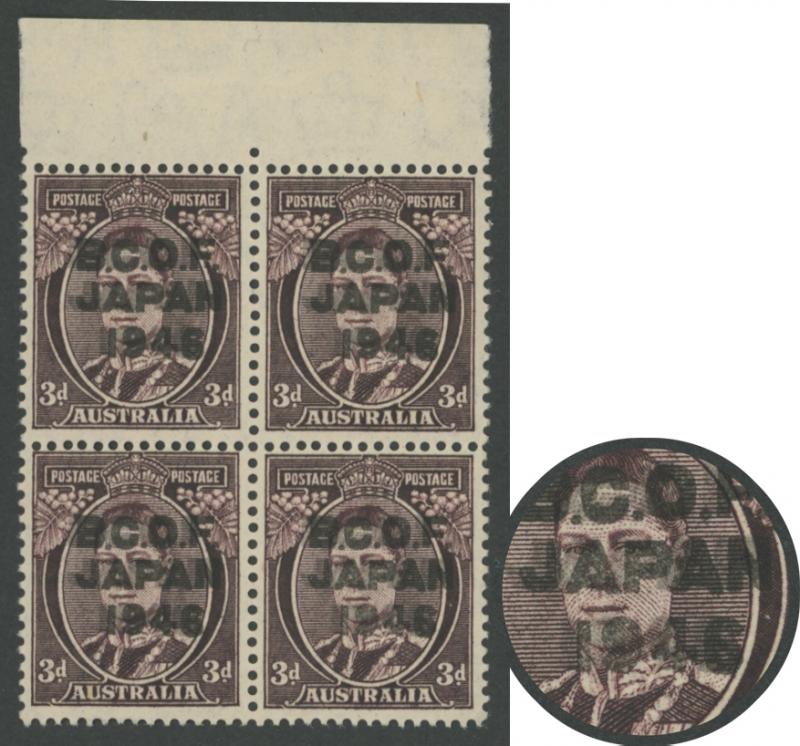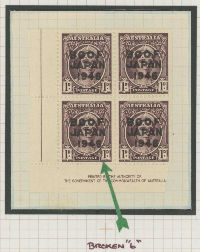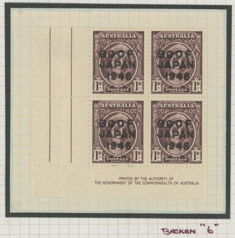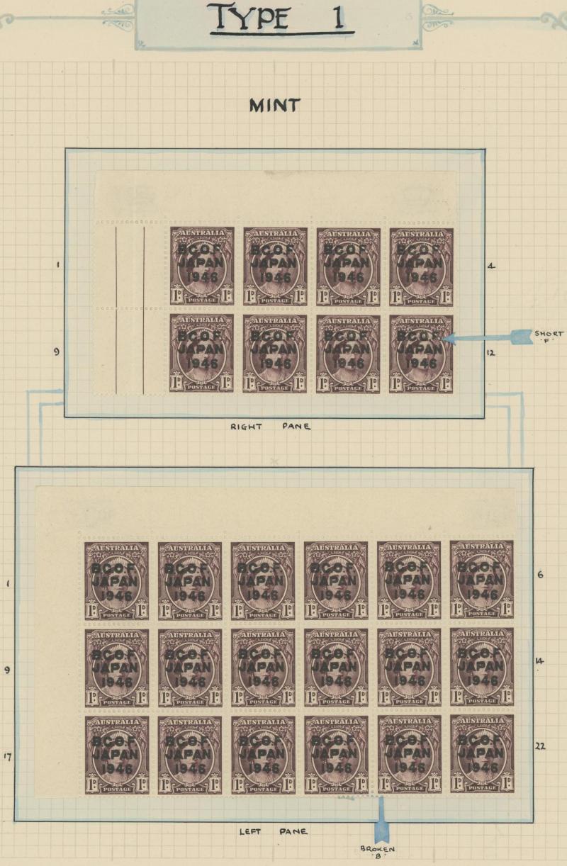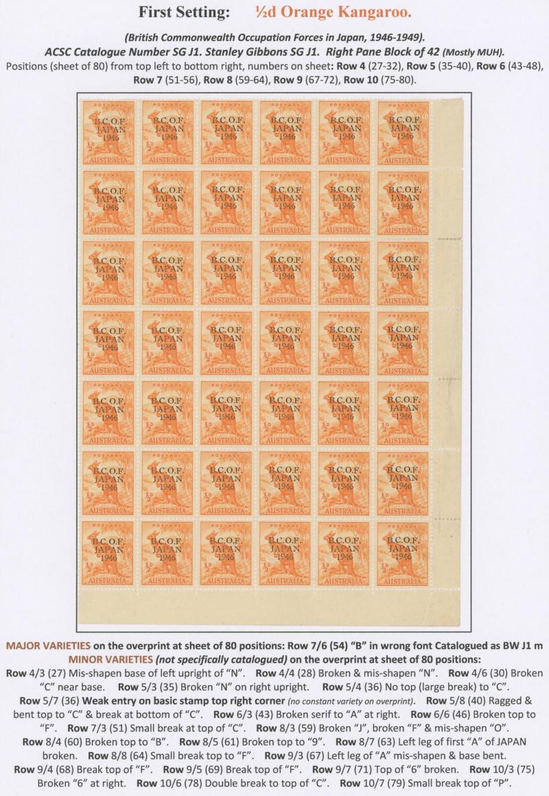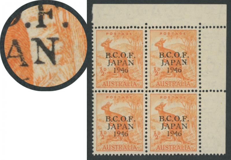 unmounted and Wrong Font (Narrow) 'N' J4j (SG J4c), mounted; and pair including Stop After 'JAPAN.' J4L (SG J4b), mounted, McCracken Imprint blocks of 4 x5 plus unmounted block of 40 (8x5) including Wrong Font (Narrow) 'B' J4m (unlisted by Gibbons)