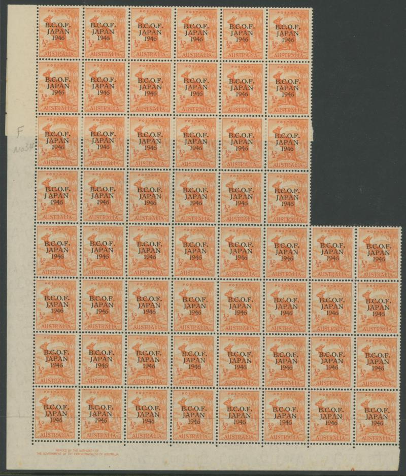 HALFPENNY: ½d Kangaroo ACSC J1 (SG J1) complete Sheet C (?) comprising two panes of 80 (8x10) with both imprints, none of the