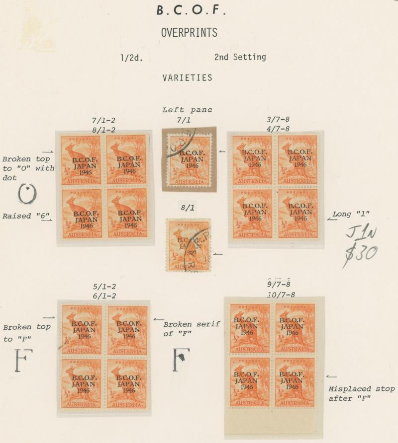B.C.O.F., Japan - Proofs of the Overprints continued...