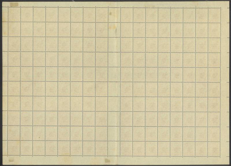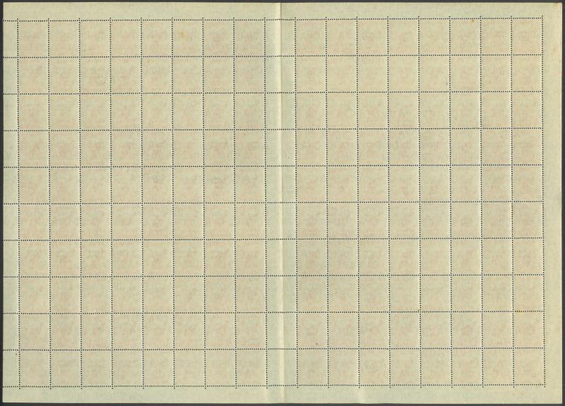 THREEPENCE: 3d KGVI ACSC J3 (SG J3) complete sheet of 160 comprising two panes of 80 with both imprints, folded in the gutter,