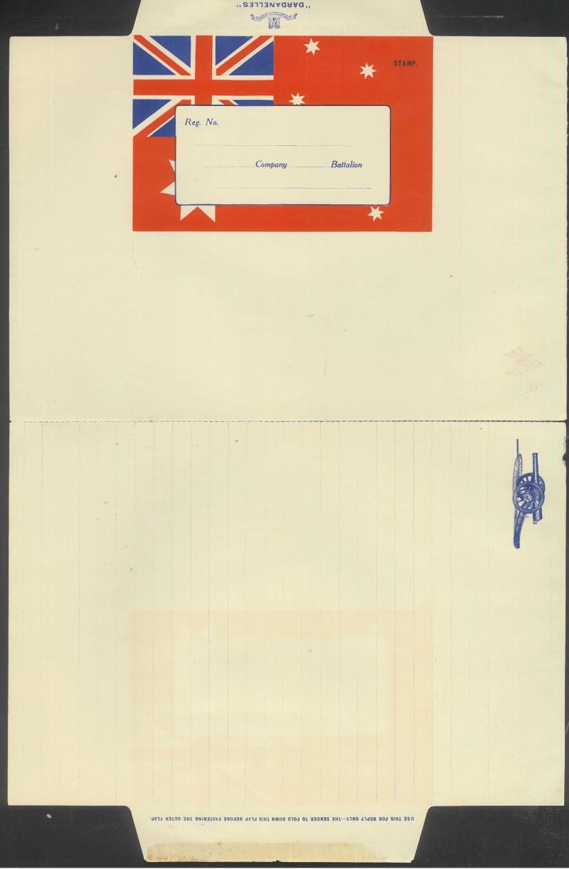 difficulties of our Soldiers getting paper and envelopes at the front ...', light crease & minor blemishes, one very fine form still attached within and a second form detached. Marvellous Gallipoli ephemera.