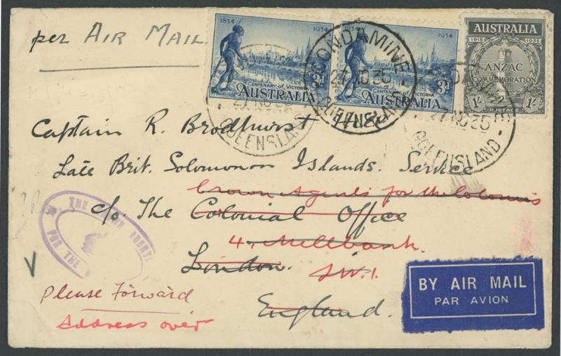 member of the Solomon Islands Administration care of the Colonial Office in London where twice redirected, minor flap fault. (Image1) (Image2)