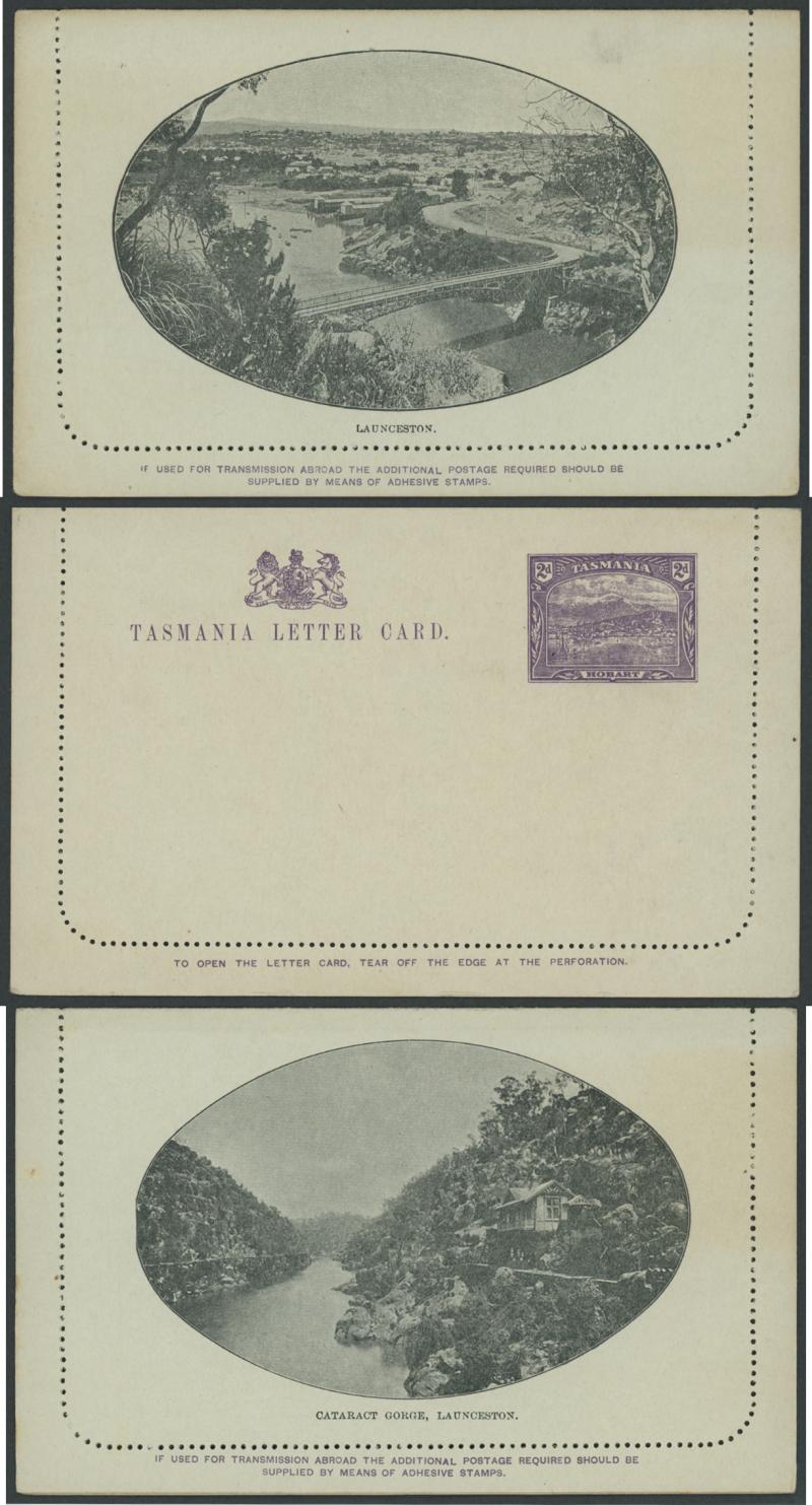 Handy selection unused unless noted including scenic Letter Cards 2d on Blue Stock 'CATARACT GORGE' & 'LAUNCESTON' (uprated to GB),