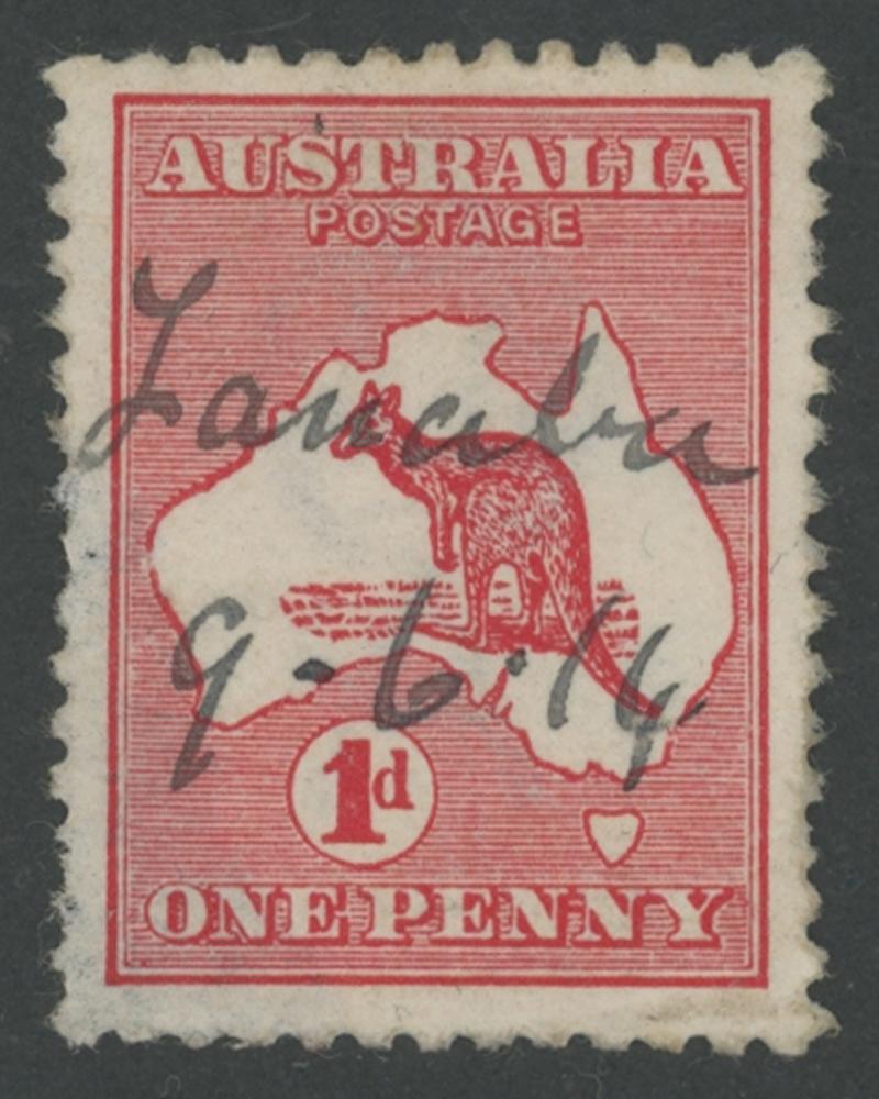 Lanaba: "Lanaba/9-6-14" manuscript in pen & ink very fine & complete on Kangaroos 1d red. Receiving Office only. Rated RRRR. RO