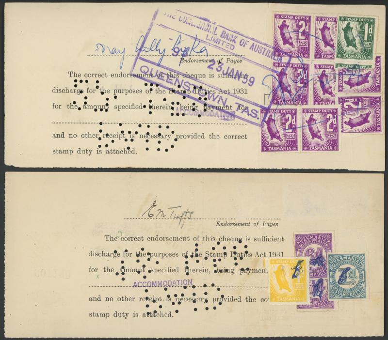 multi-value & a couple of Mixed Issue usages on the reverse of about 100 cancelled cheques, and '½d' in Red on 1d ** blocks of 4 & 10, later Pre-Decimals including Platypus ½d black ** pair & used x2, 4d block of 4 **, 5d block of 6 **, used blocks