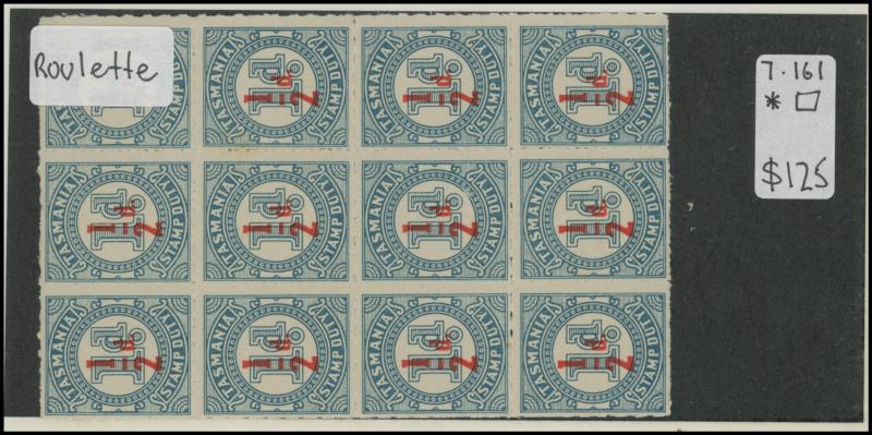 both right-hand units being Perf 12½x12½x12½x12 ACSC T76 (SG 256c), well-centred, large-part gum, Cat $1500+ (£850+) for two irregular compound singles. Ex John Bell (NSW) - sold at our auction of 8.5.2013 for $443 (Sale 181 Lot 1591) - and 'Dubois'