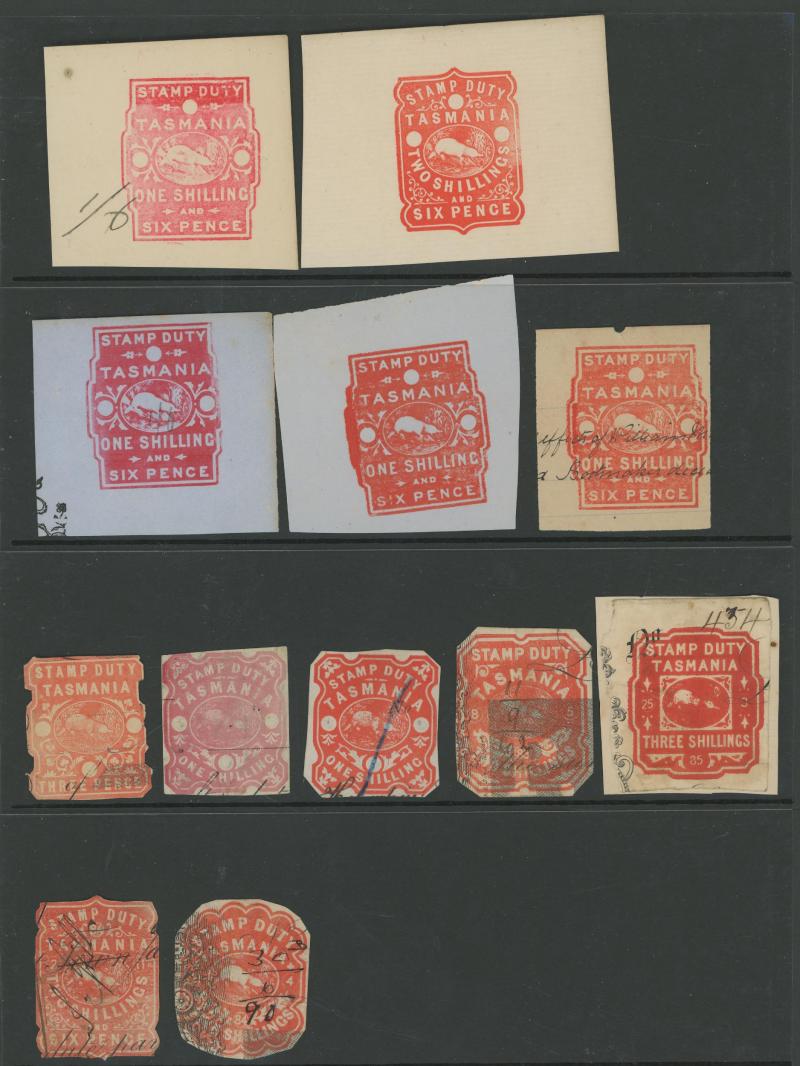 places), each unit cancelled with 'COLONIAL TREASURY/8AP8/1868/ TASMANIA' fiscal datestamp. Impressive piece. Sold at our auction of 5.9.2009 for $1570 (Sale 150 Lot 317). Ex 'Dubois' (III): sold for SFr415. (Image1) (Image2)