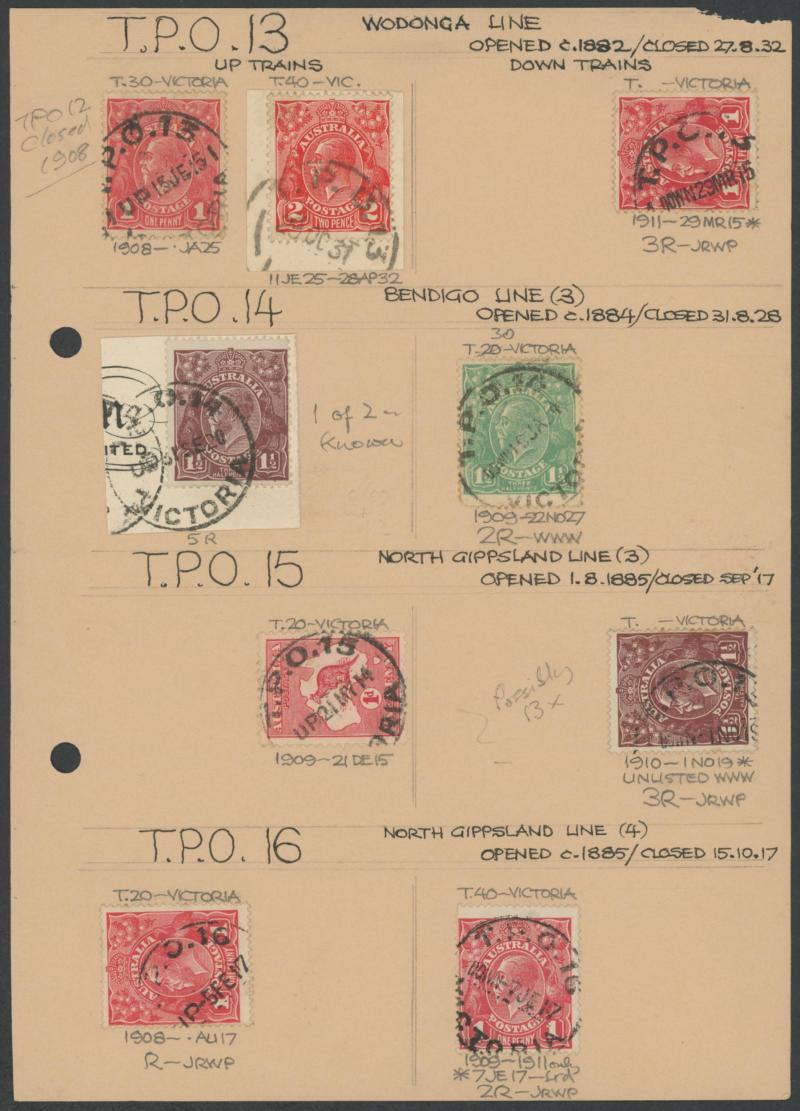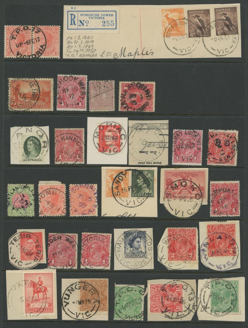 label), 'JENSENS', 'MAFFRA WEST UPPER', 'MANOR', 'McKINNONS', 'MT COLE', oval 'PENTLAND HILLS' (on 2/- Postage Due), 'SMOKO', double-circle 'TO TABILK', 'TYNTYNDER WEST', 'VICTORIA VALLEY', 'WAURN PONDS', 'WEEAPROINAH', 'WHOOREL', 'WINJALLOK',