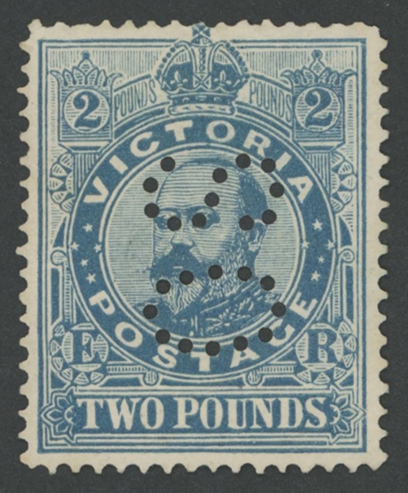 OFFICIAL STAMPS: 1901-10 'POSTAGE' V/Crown KEVII £2 blue as SG 400 but punctured 'OS' ACSC V135b, no gum, Cat $1250 for mint (£750
