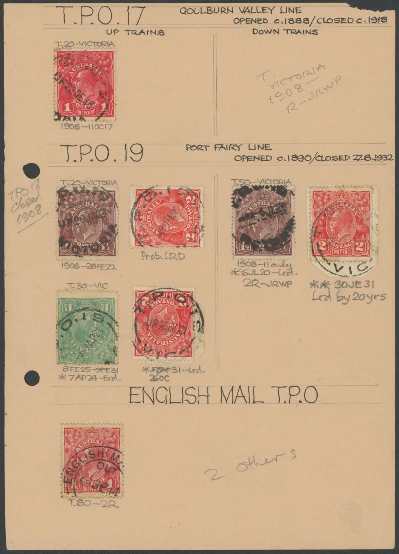 Travelling Post Offices: Commonwealth patterns on KGV Heads with numerous very fine and many rare strikes including 'DOWN' TPO 4,