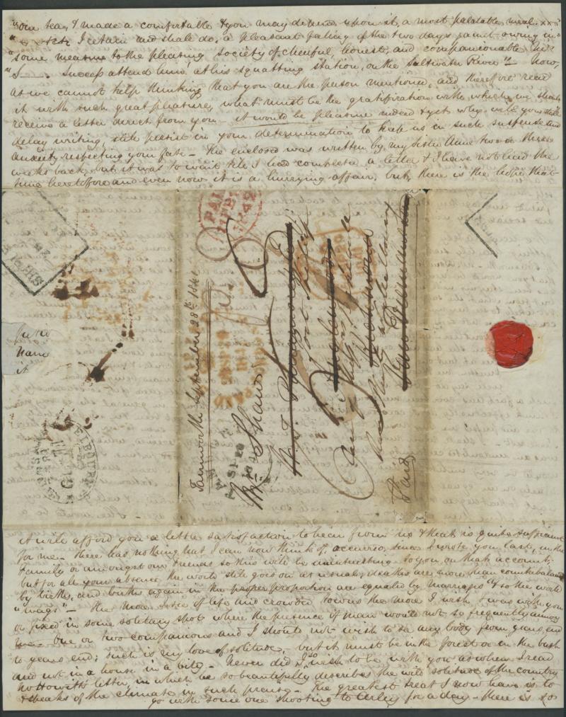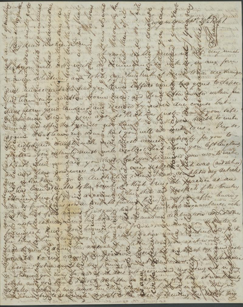 1842 (Sept 29) entire letter from Great Britain to "Anglewood, Richmond, Van Diemens Land" endorsed "P 8"[d] & "Paid" with largely