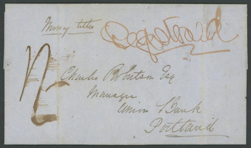 1848 (Sept 6) stampless outer from New South Wales endorsed 'Registered' with just-legible 'ALBURY/NEW S.WALES' despatch backstamp