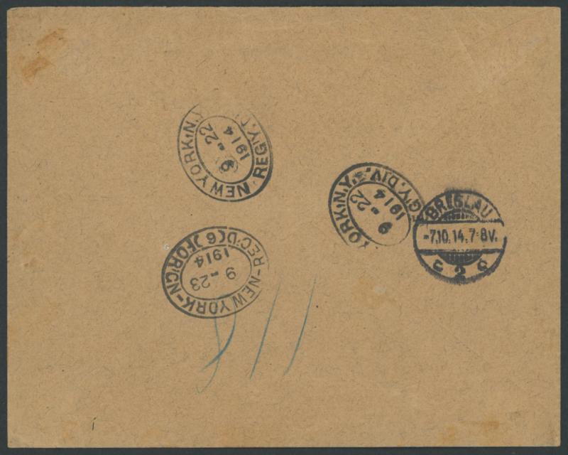 arrival backstamps, a few very minor blemishes. After the outbreak of World War I, Australian troops landed on Nauru on 9.9.1914 and destroyed the German wireless station equipment. The USA initially remained neutral, allowing mail for Germany to be