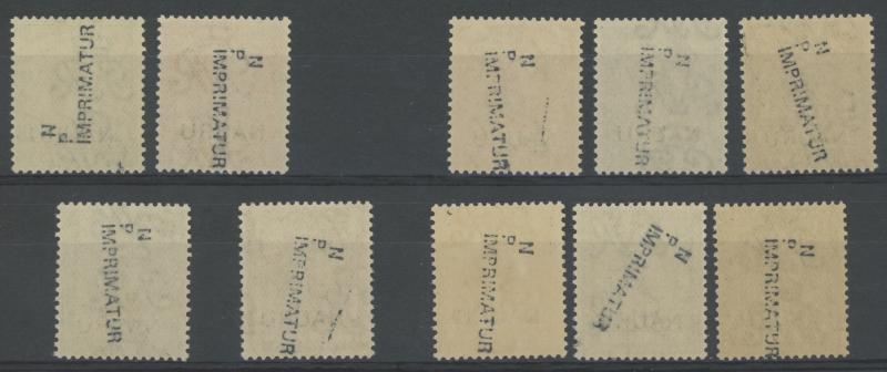 SPECIMEN STAMPS: 1916-23 Overprints on Great Britain ½d to 1/- SG 1-12 each with 'N/P/IMPRIMATUR' handstamps on the reverse,