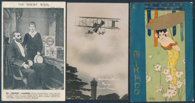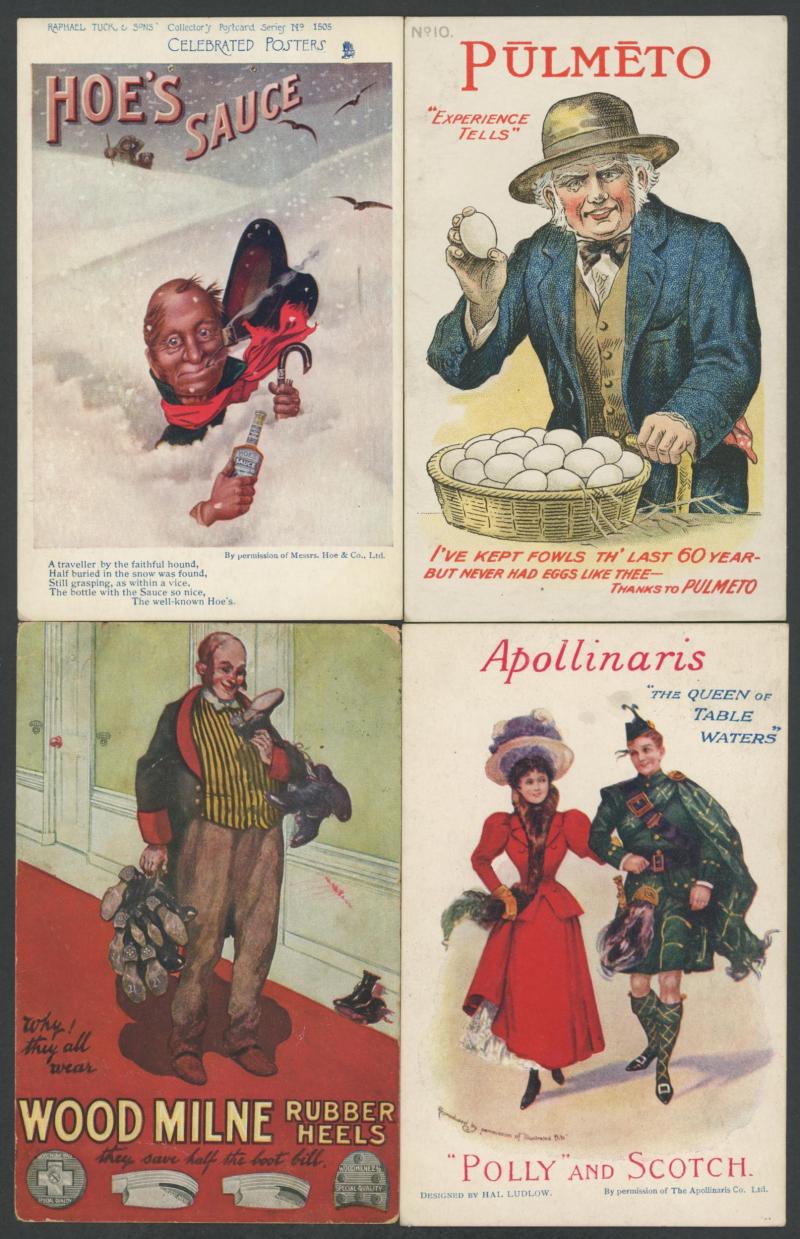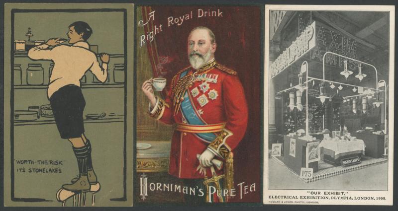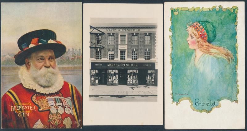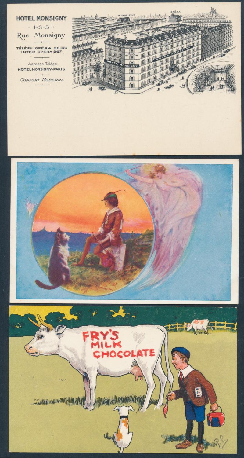 products, hotels, exhibitions, tourism, etc, strength in artist cards with some Art Nouveau elements, some soiling but generally fine to very fine, mostly unused.