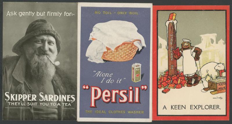 Mustard, Colman's Mustard, Capewell Nails, Milkmaid Milk x2, Fletcher's Indian Sauce, Hoe's Sauce, Camp Coffee, Persil, Horniman's Pure Tea, Skipper's Sardines, Apollinaris Table Waters, etc, also for Sporting & Dramatic News, Pitman's Shorthand,