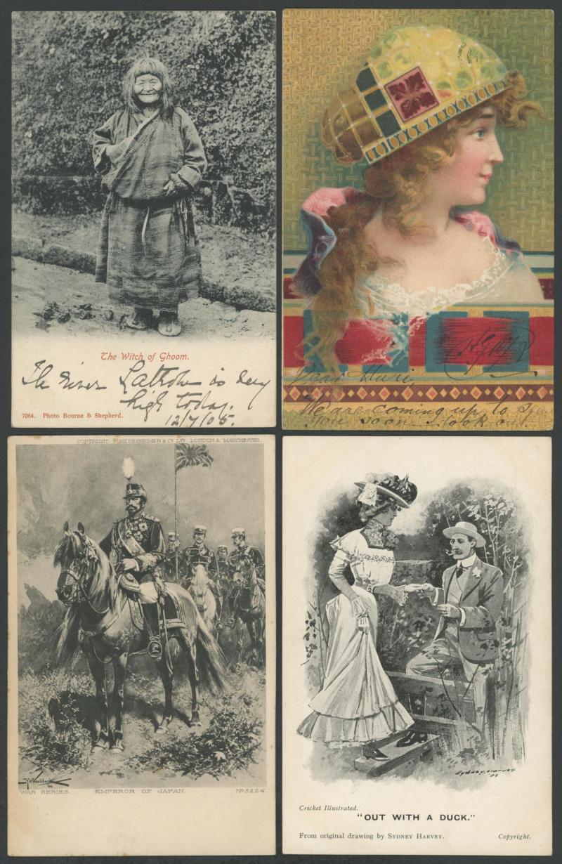 Glamour including a delightful Kirchner, Artist Cards, miniature cards, Children including European sets (?) of 5 & 6, New Zealand 1904 Antarctic Series 'Harnessing the Dogs', India 1906 'Prince & Princess of Wales at the Races, Calcutta', etc, a few
