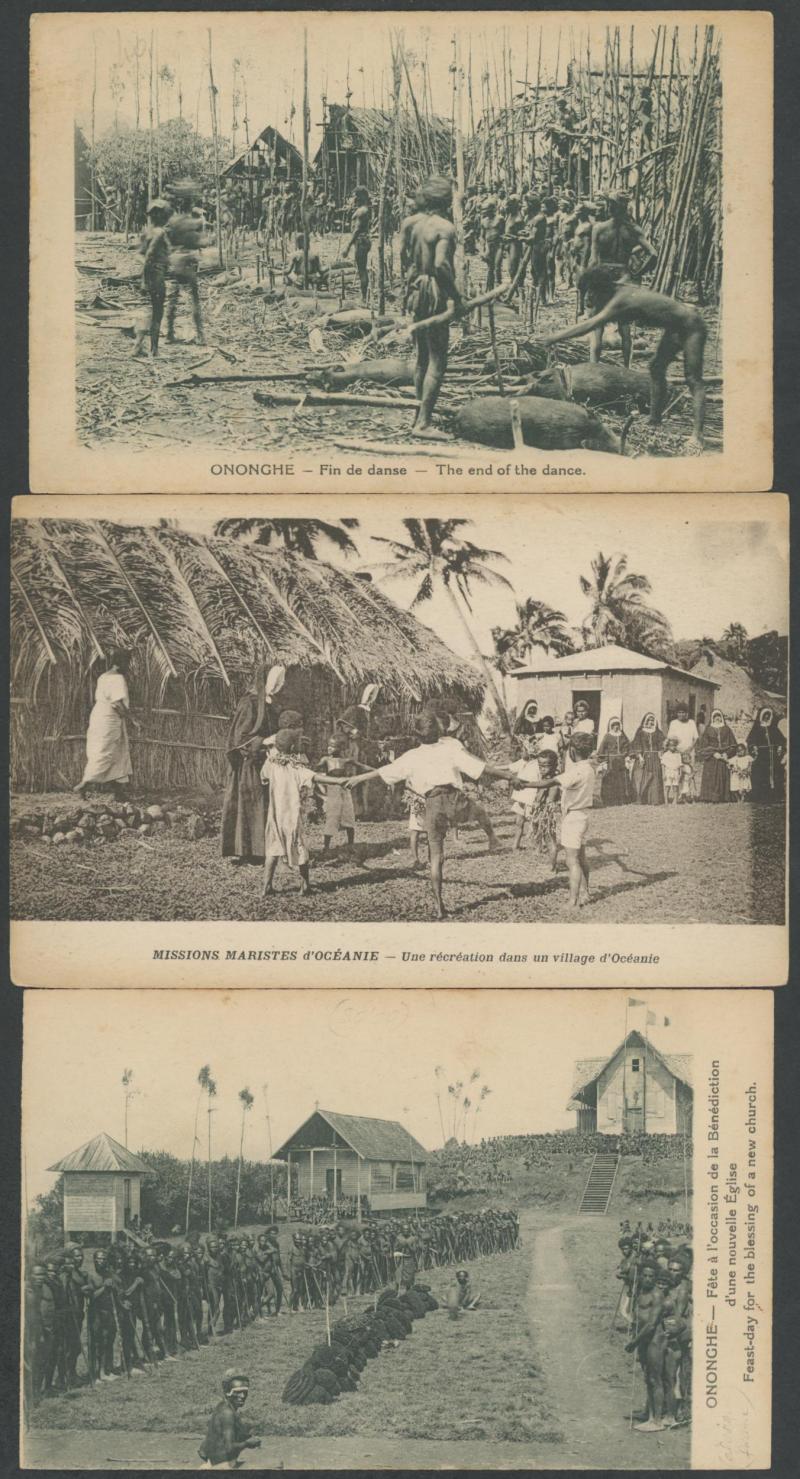 Papua mainly French missionary issues, Solomons, New Caledonia, New Hebrides, Fiji, Samoa, etc, numerous indigenous subjects including portraits, ceremonies & artefacts, condition variable but generally fine to very fine (140 approx); plus a similar
