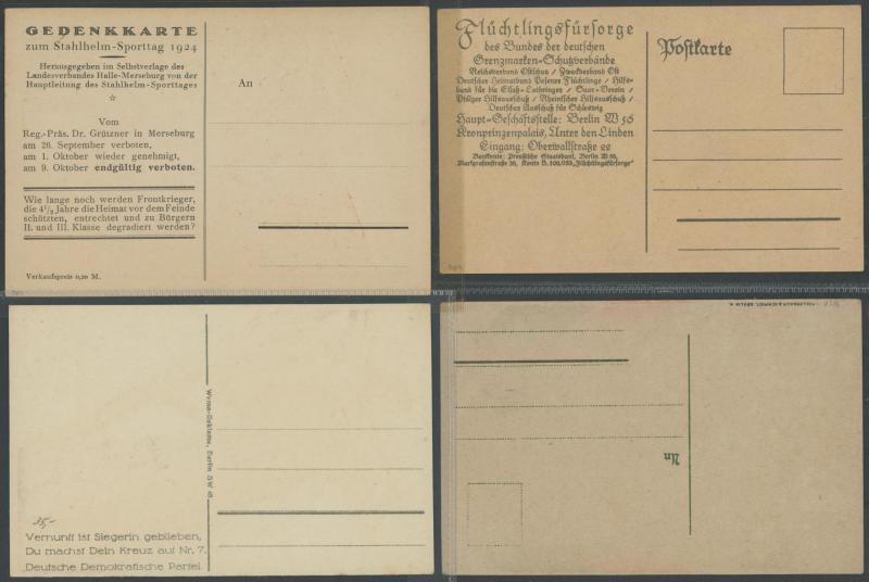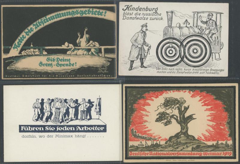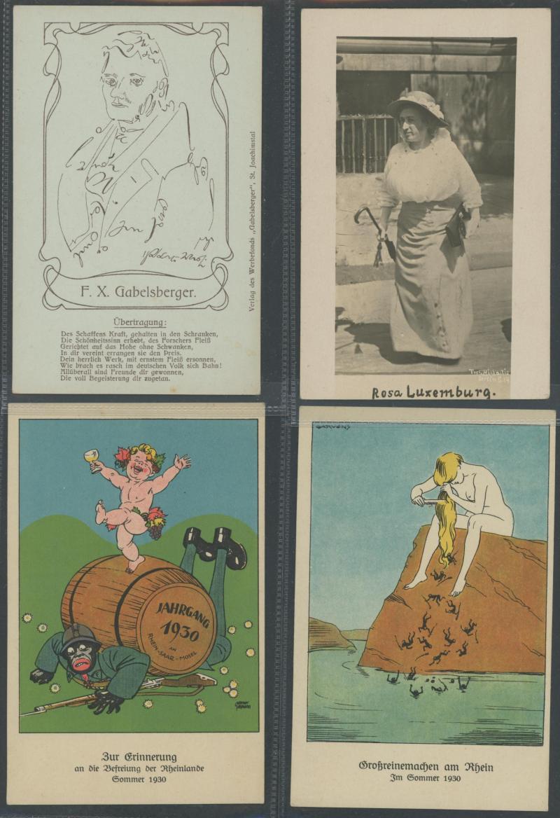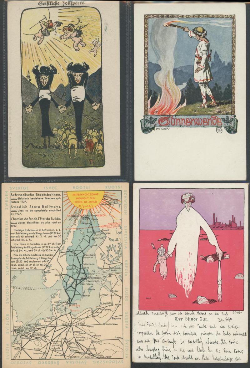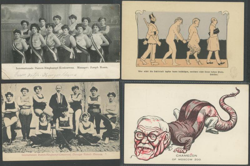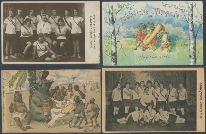 by Gerhard Kreische (famous image, a bit aged on the address-side), humour and satire, etc, plus female boxing troupes x4, a few with toning on the address-side otherwise very fine and mostly unused.