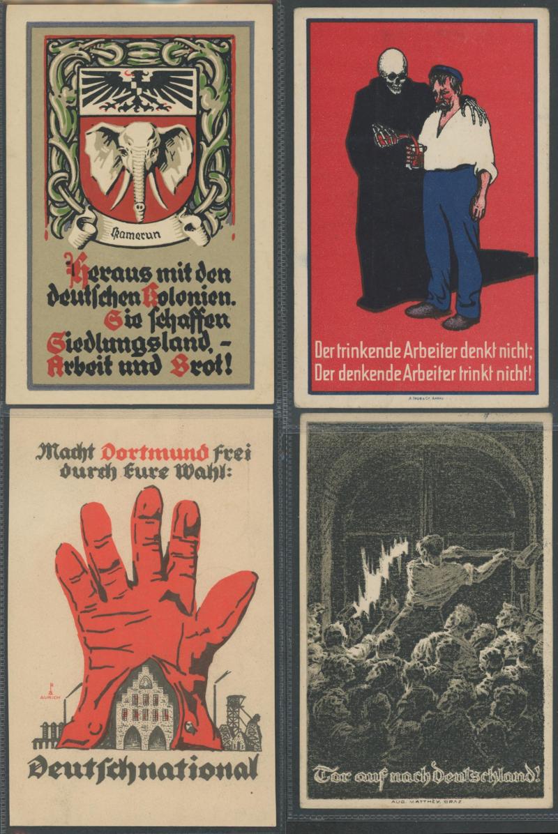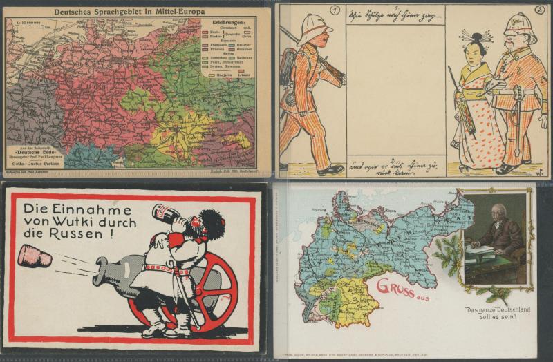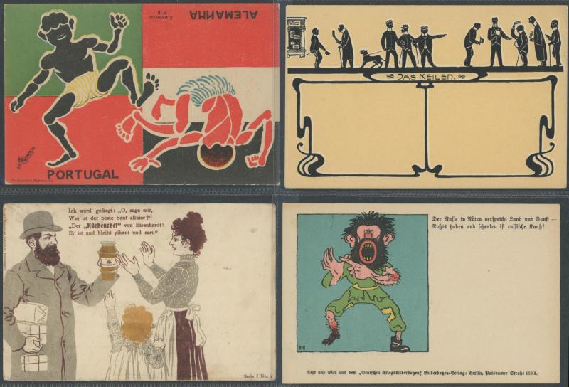 GERMANY: Small box of German & Austrian political propaganda artist cards with Colonial subjects including overt racism, 1918