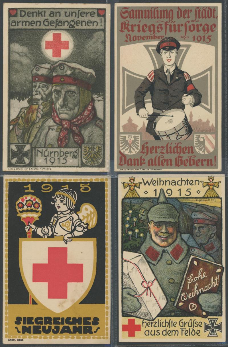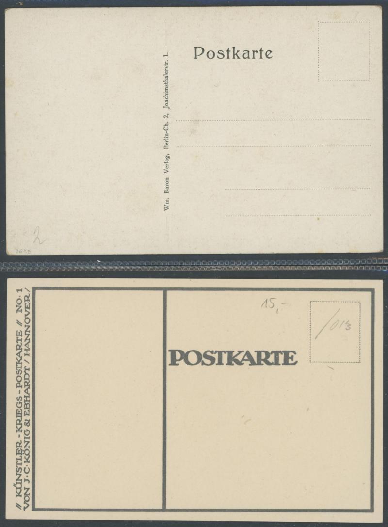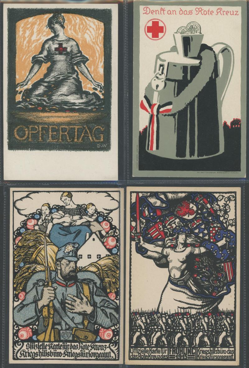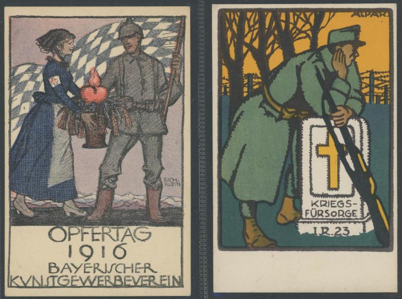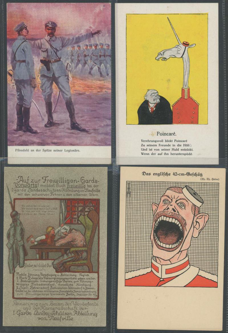 GERMANY: World War I artist propaganda cards promoting German heroes, soldier welfare, anti-Allies including specific anti-British