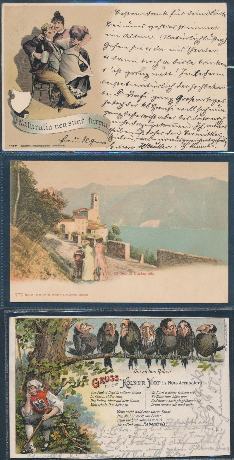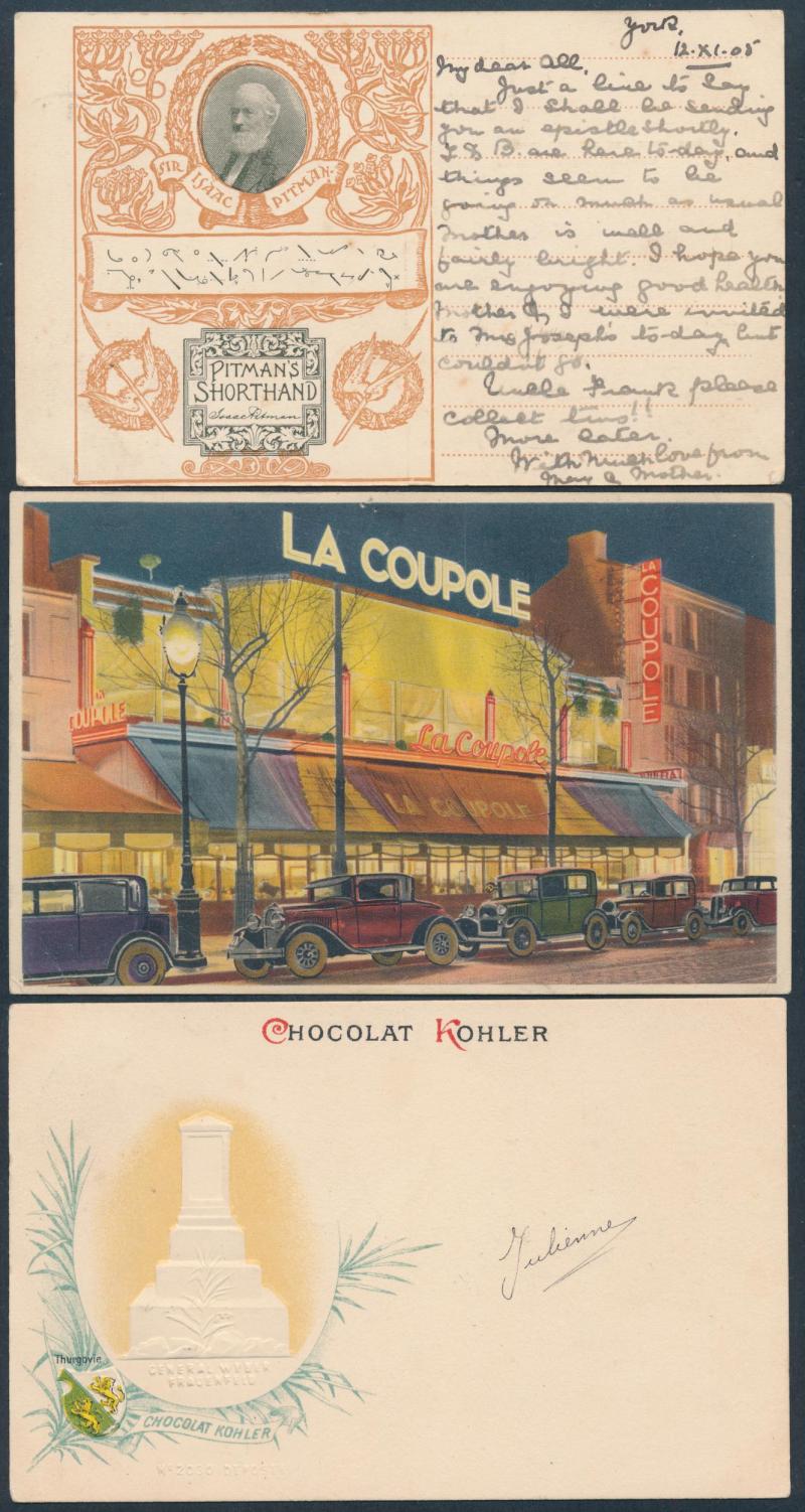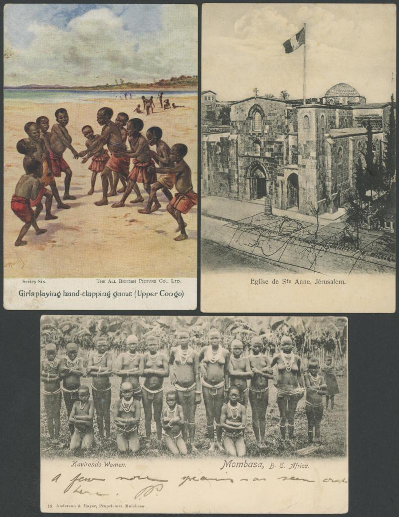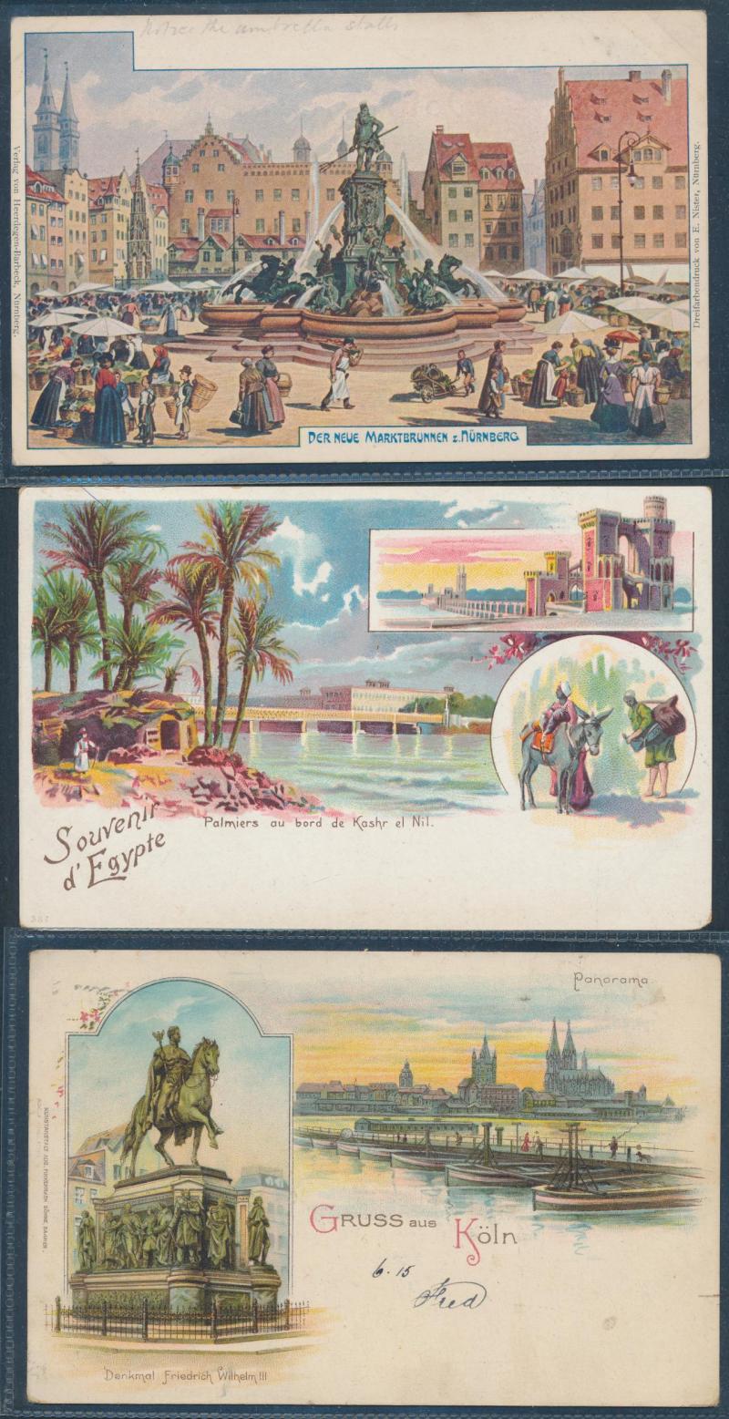 Delightful selection of Undivided Back chromolithos from Germany, France, Switzerland, Egypt, etc, and a few advertising types,
