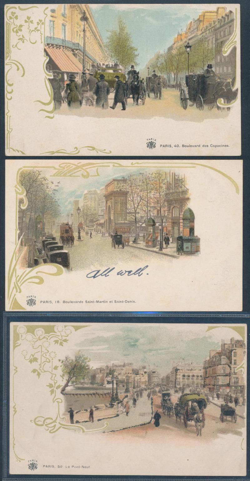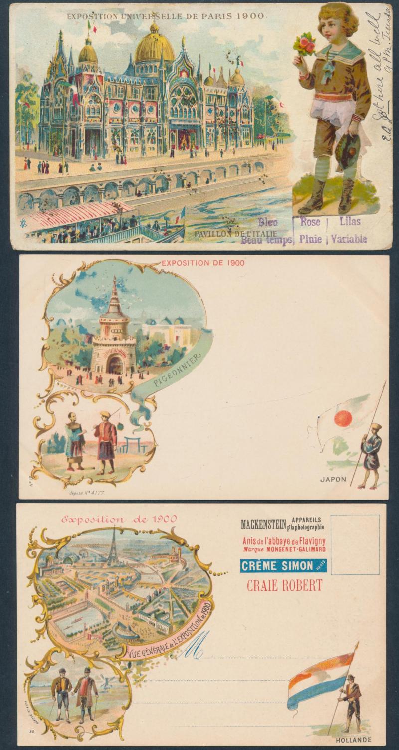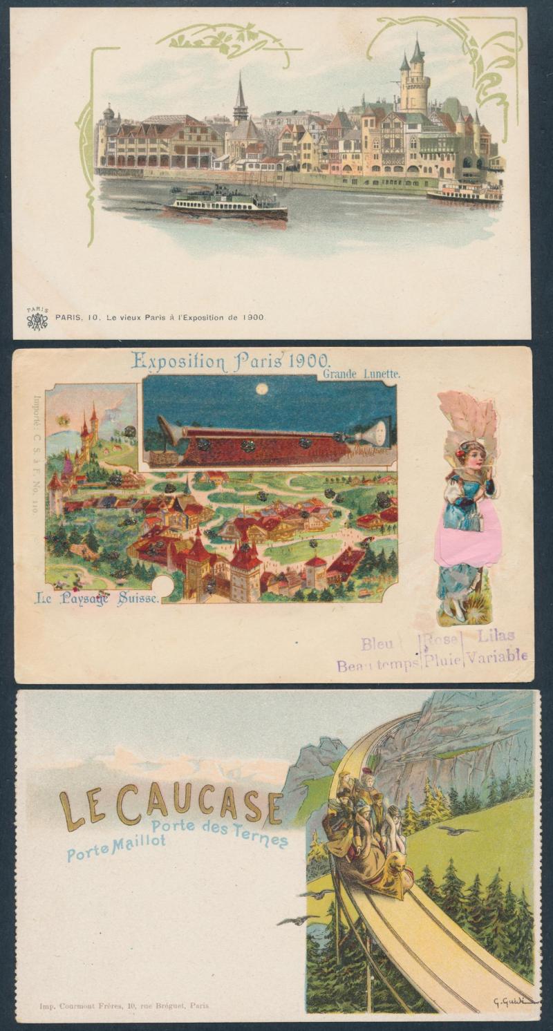 FRANCE: 1900 Paris Exposition chromolithos x29 including a few advertising & textured types, other artist cards x14 and various