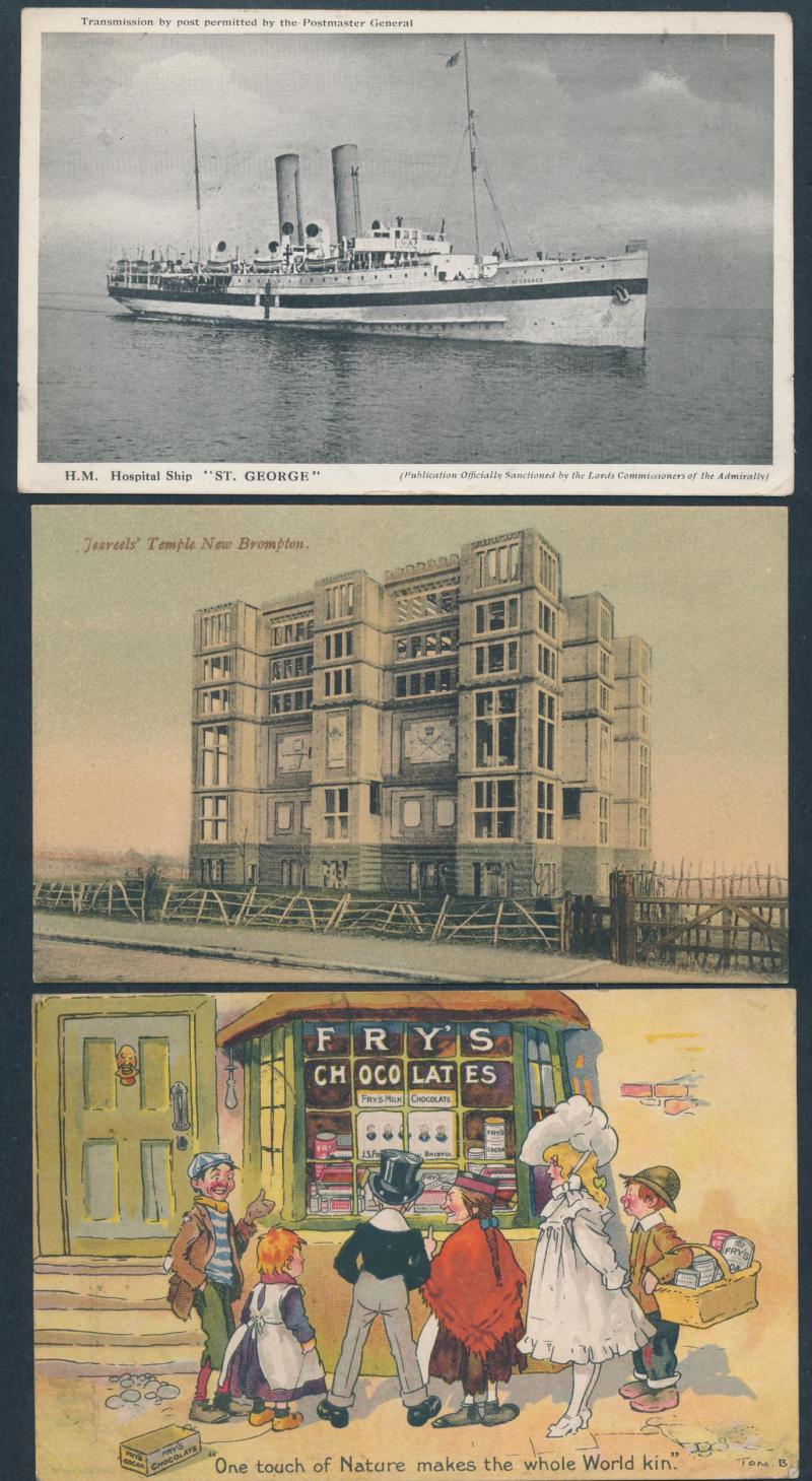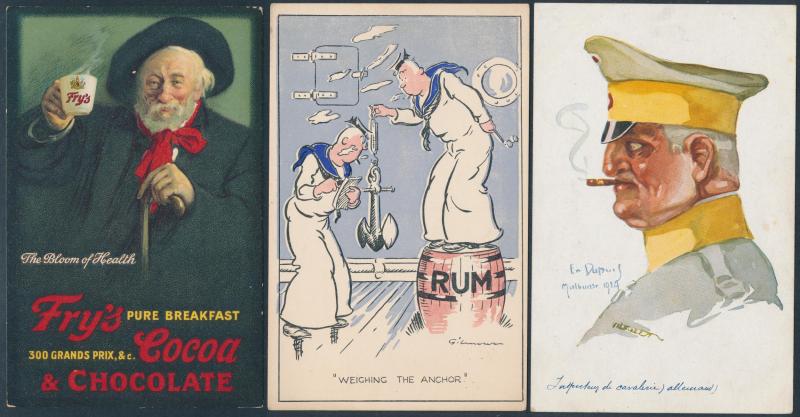including a few real photo types, WWI Troops in Egypt including several real photo types, delightful English & Continental Advertising x17 including for Hotels, Chocolate, Whisky, etc, generally fine to very fine used or unused.