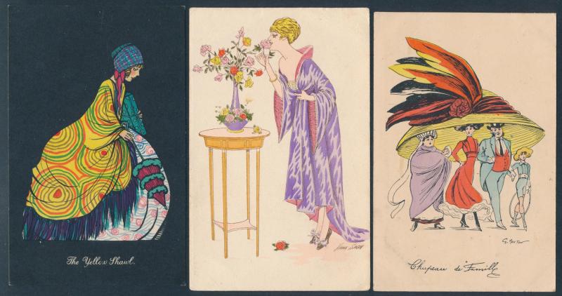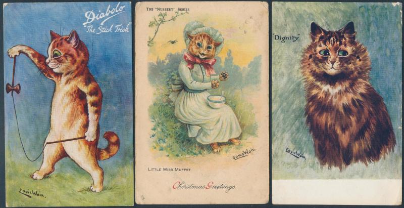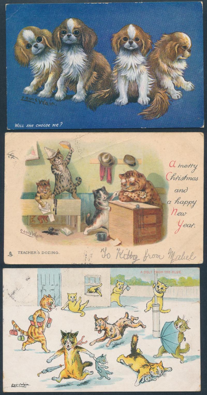 Eclectic group including Louis Wain Cats & Dogs x7, lovely Glamour group including a Kirchner and other Art Nouveau, early Aviation