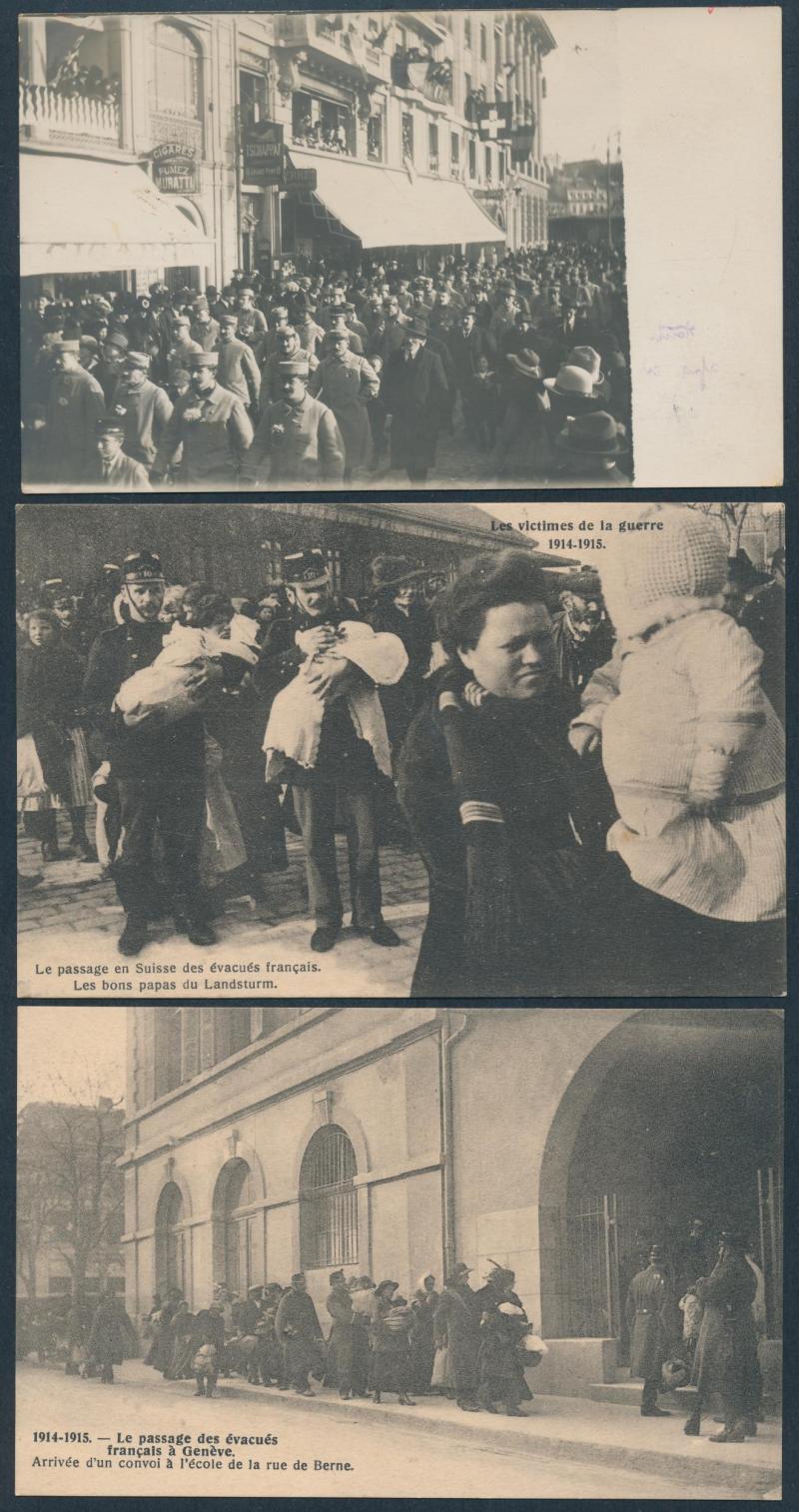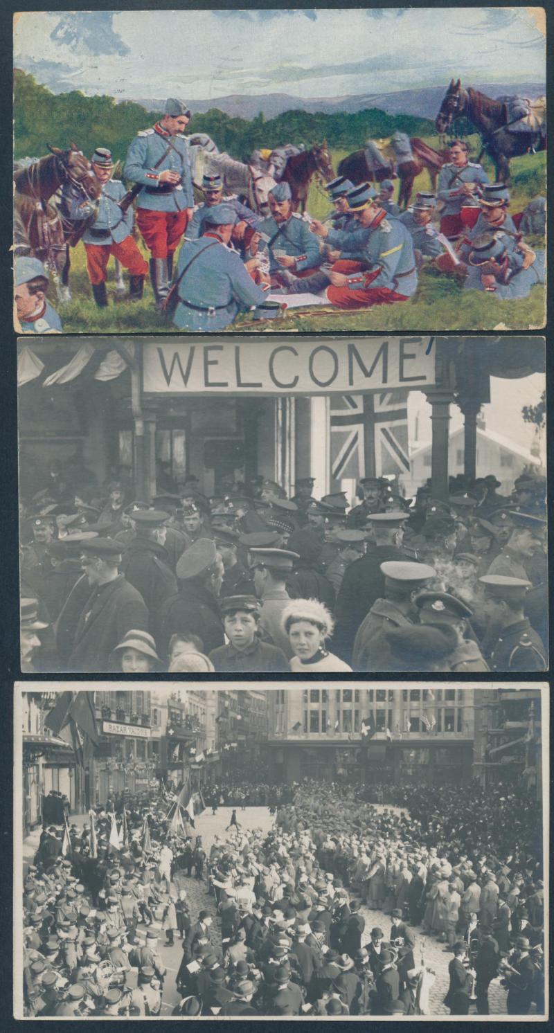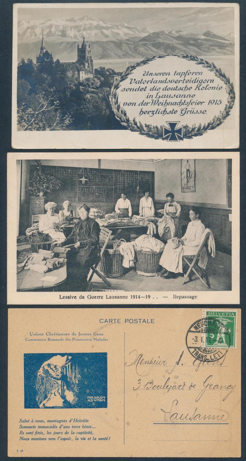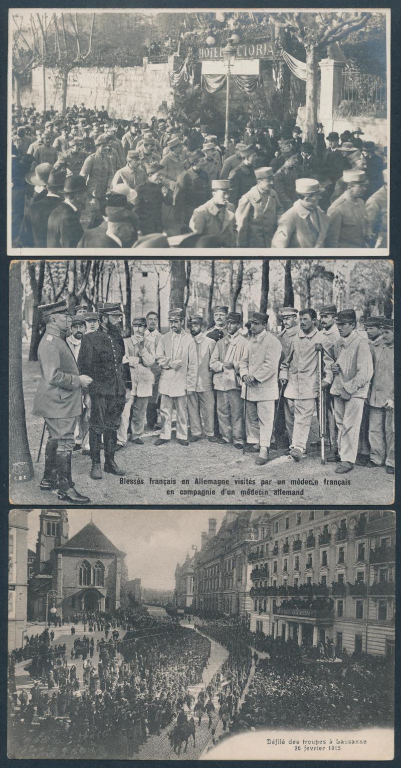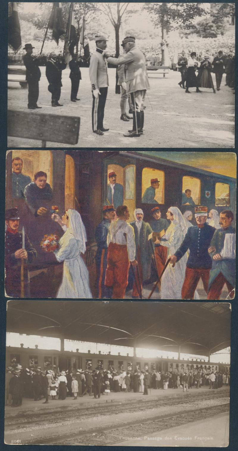 SWITZERLAND: World War I group with Swiss troops, French refugees and internees including real photo types and others of Peace