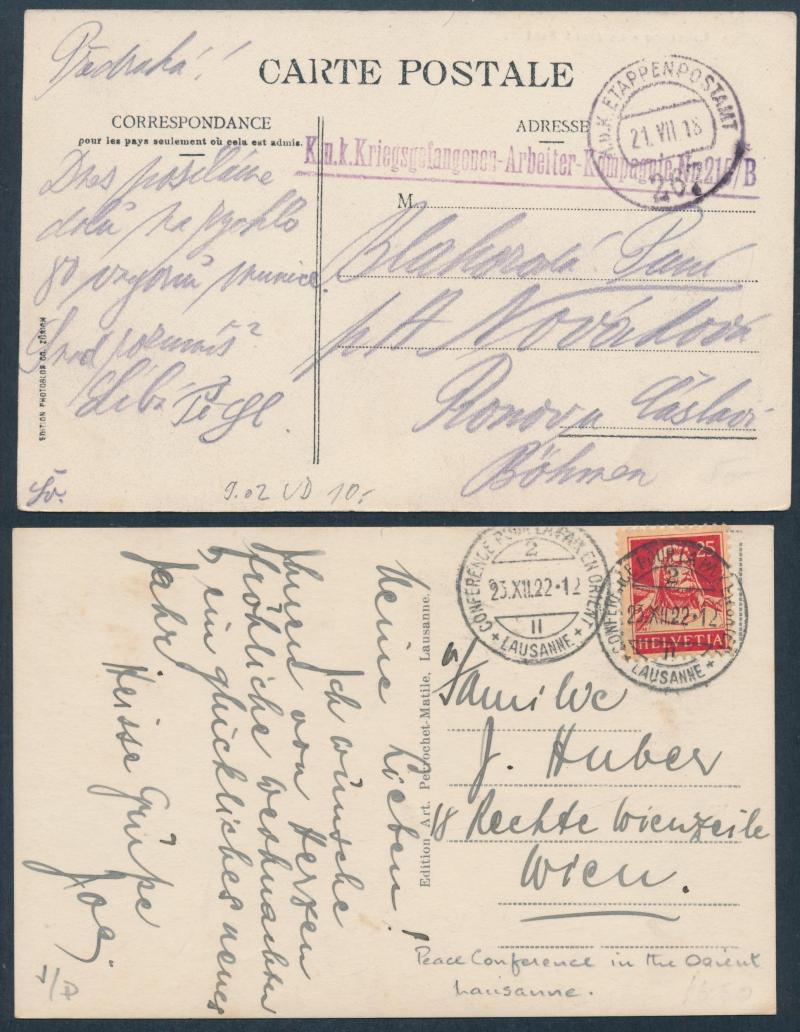 Celebrations, etc, also a postal history group including cards from French & English internees, 1922 with Lausanne Peace Conference cds, several with censor cachets, etc, fine to very fine used or unused. A very interesting and poignant lot.