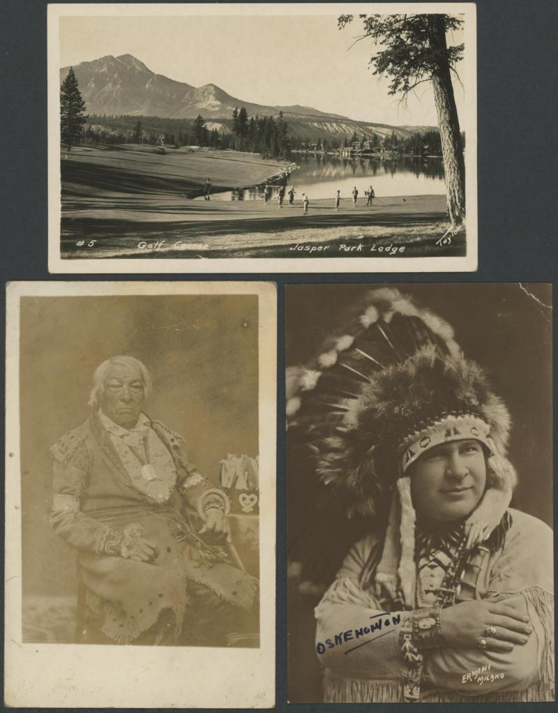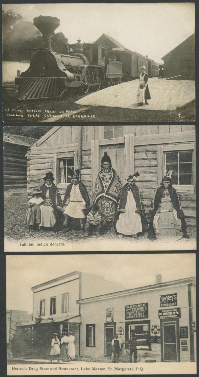 CANADA: Mostly Golden Age cards with real photo types including an amazing rail-laying machine & 20+ labourers, indigenous subjects