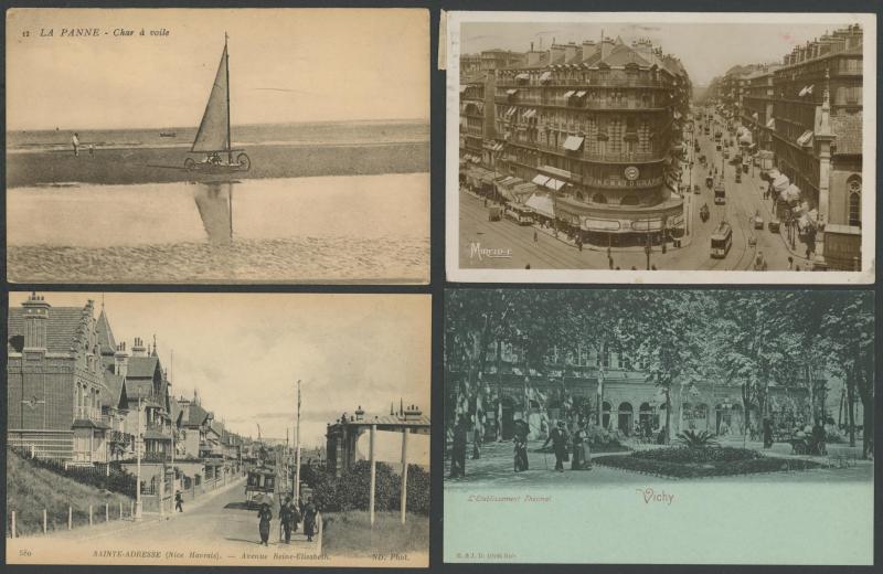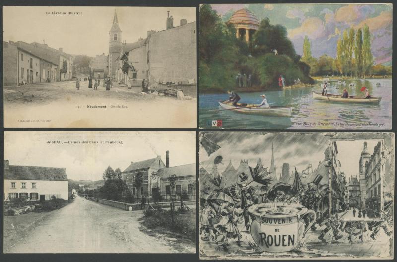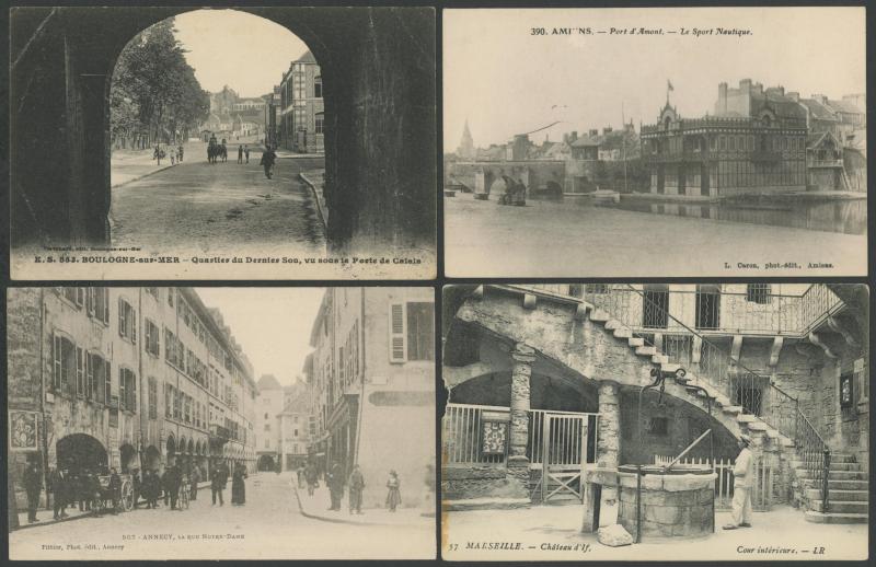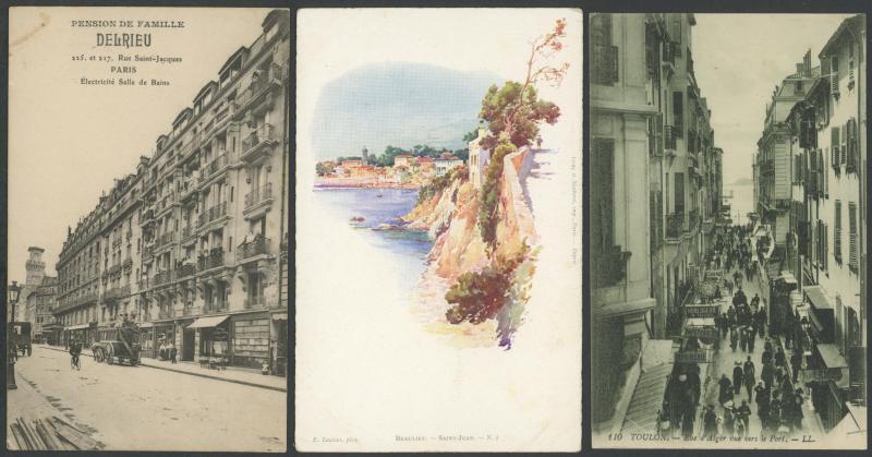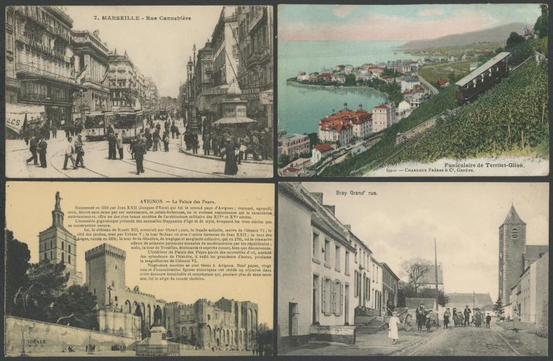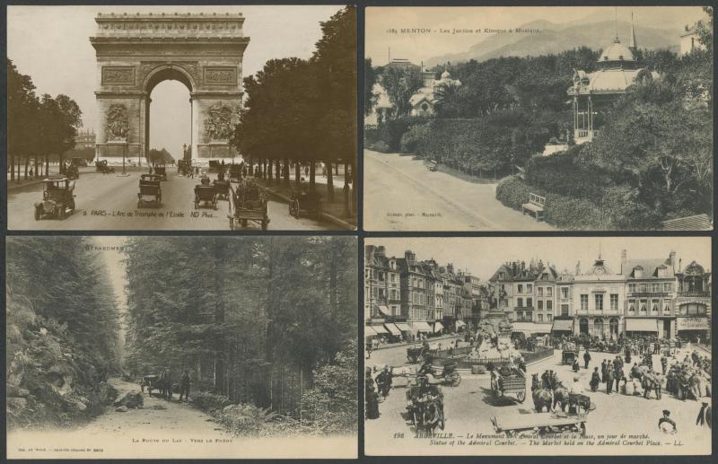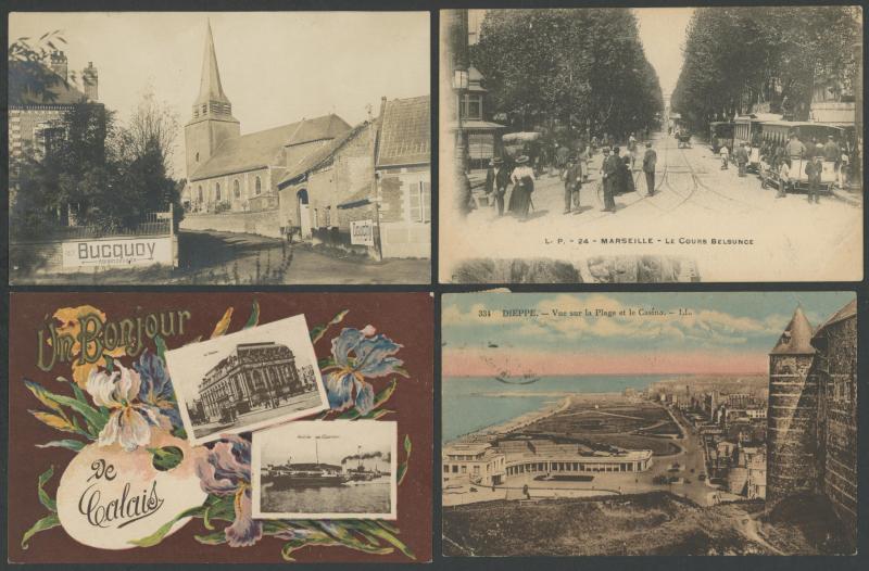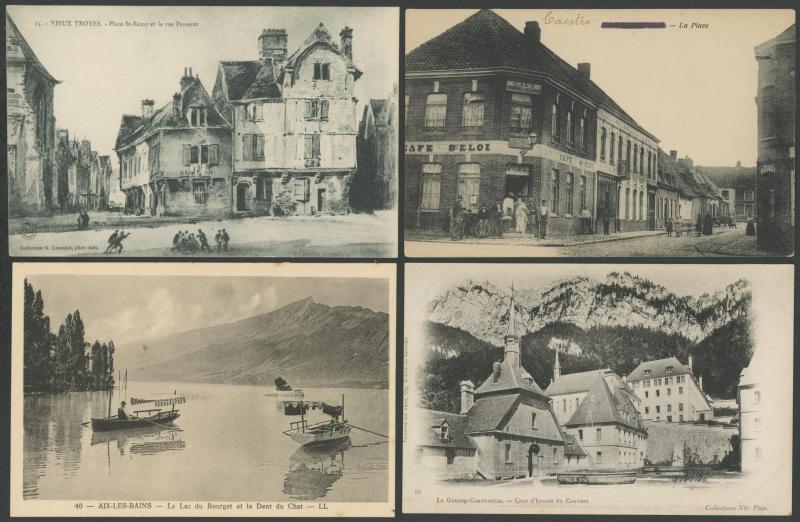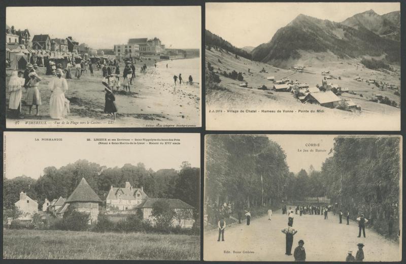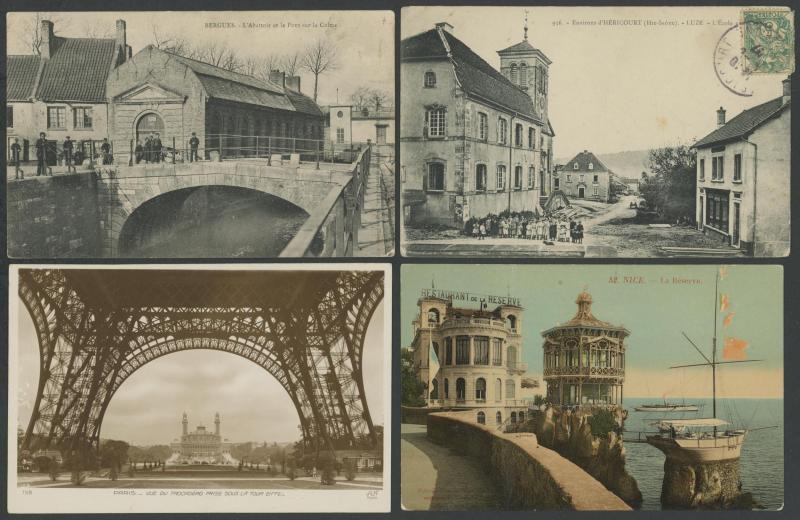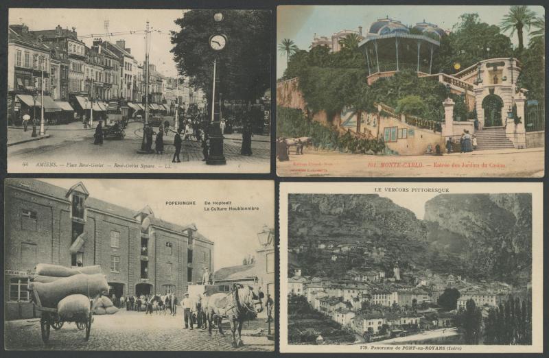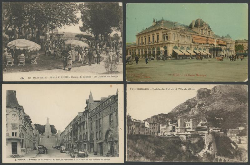 quantity of collotypes including numerous exellent views by LL & other superior producers, towns & streetscapes, rivers & beaches, rural scenes & beauty spots, casinos, railway stations, villlages & chateaux, schools, etc, also some Monaco, condition