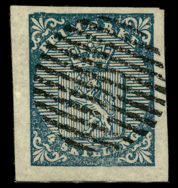 8684 O 1 image1855, 4sk blue Coat of Arms (Scott 1), single, Very Fine.