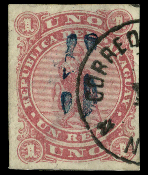 8691 cover o imageOfficials, 1886, First Issue, Imperf, the complete set tied by "Correos De La Asuncion" starred double circles on a Registered cover from Asuncion to the Consul General of Paraquay in Buenos Aires, Argentina, with the handstamped seal of the Paraguay Ministry of External Relations; no backstamps and no dated postmarks; some foxing, edge flaws a repaired tear along a file fold, but exceedingly rare, as these stamps were only in used for 10 days., Fine. (Image) (Image2) (All Images)