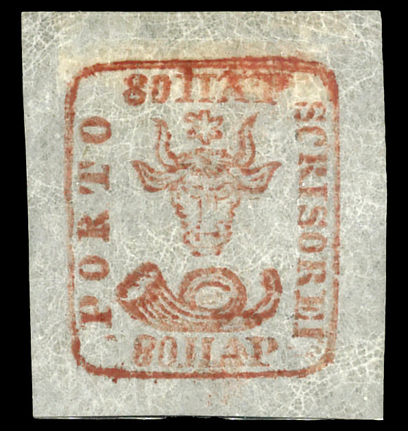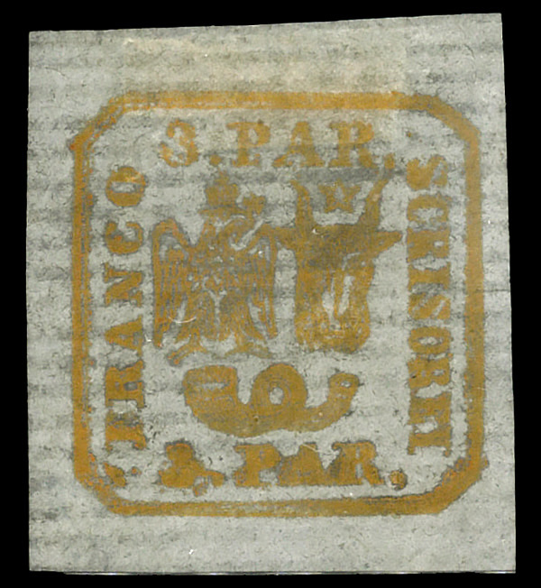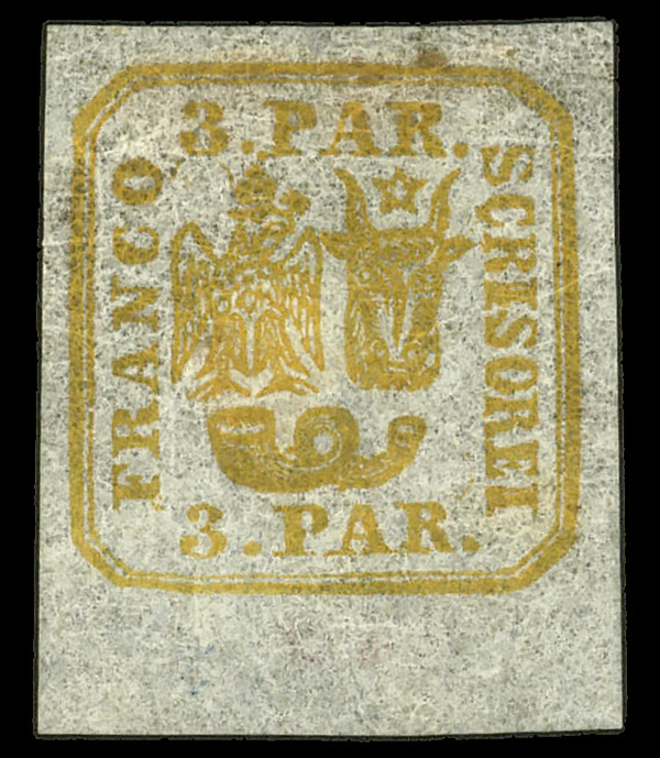 8697 og 11 image1862, Moldavia-Walachia, hand printed on white laid paper, 3pa orange (Scott 11), single, o.g., hinge remnant, Extremely Fine to Superb.