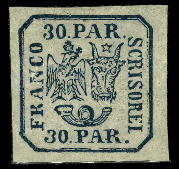 8705 og 21 image1864, Moldavia-Walachia, typographed, 30pa deep blue (Scott 21), single, o.g., lightly hinged, Extremely Fine.