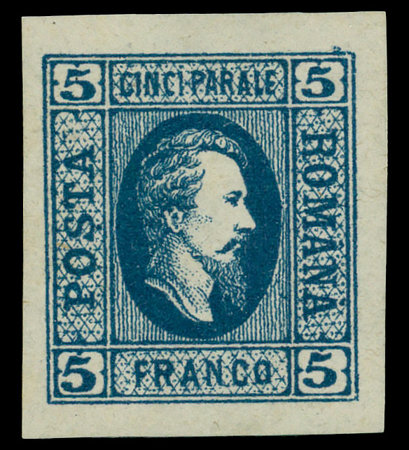 8709 og 23 image1865, Prince Cuza, 5pa blue on white wove paper (Scott 23), single, o.g., lightly hinged, Extremely Fine.