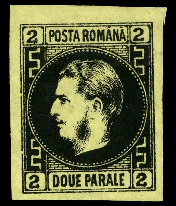 8712 og 29 image1866-67, Prince Carol, 2pa black on yellow, thin paper (Scott 29), single, o.g., bits of hinge remnant, Extremely Fine.