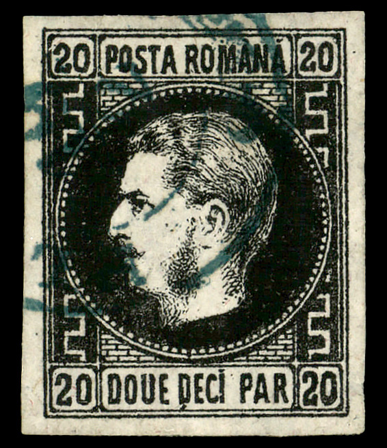 8715 og 30a image1866-67, Prince Carol, 5pa black on indigo, thin paper (Scott 30a), single, o.g., hinge remnant, Extremely Fine.