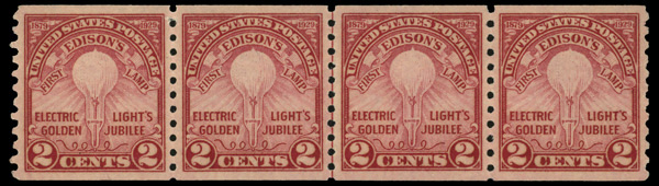 8257 nh 656 image1929, 2¢ Edison, rotary press coil (Scott 656), line strip of 4, exceptional! o.g., never hinged, Very Fine to Extremely Fine.