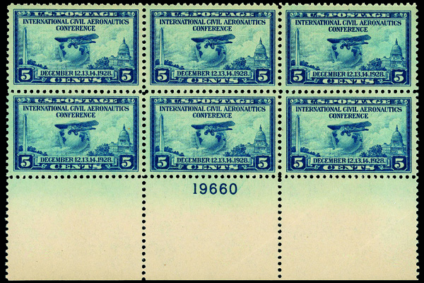 8253 nhbl 649-650 image1928, Civil Aeronautics complete (Scott 649-650), plate blocks of 6, o.g., never hinged, Extremely Fine.