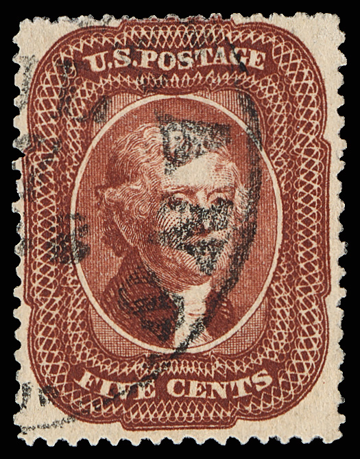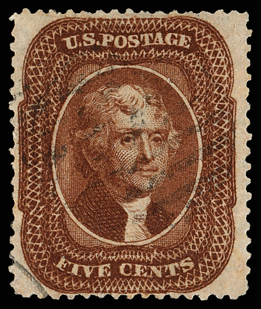 2379 O 30 image1861, 5¢ orange brown, type II (Scott 30), a choice, premium example, lightly canceled and sound with intense color and highly detailed impression, Very Fine.