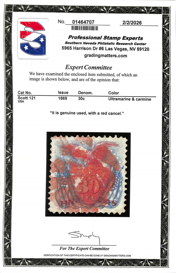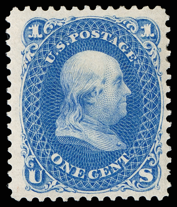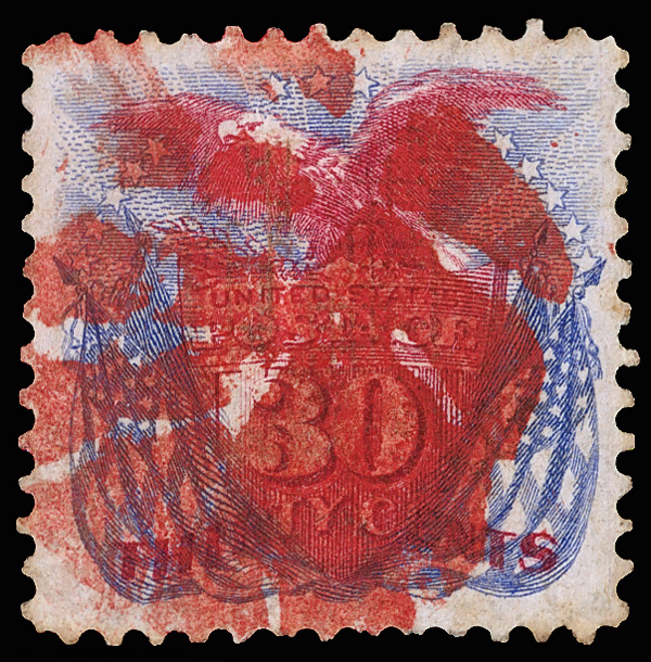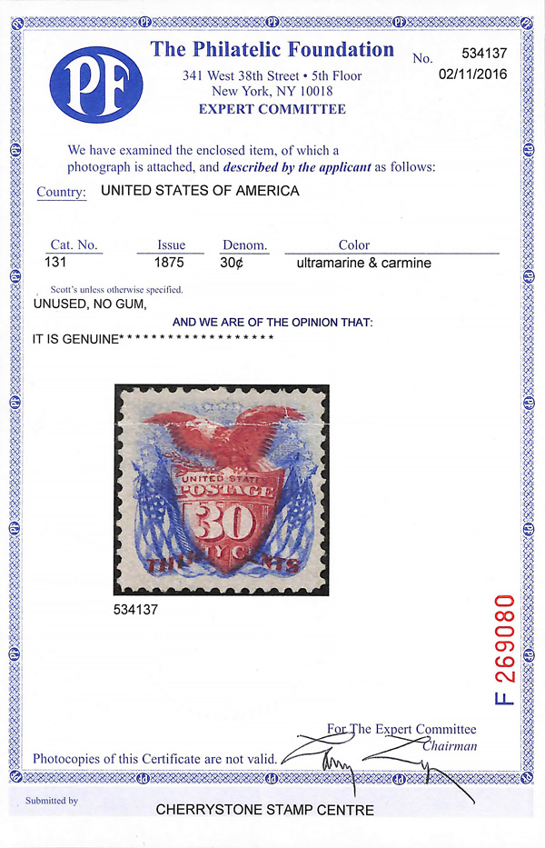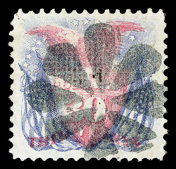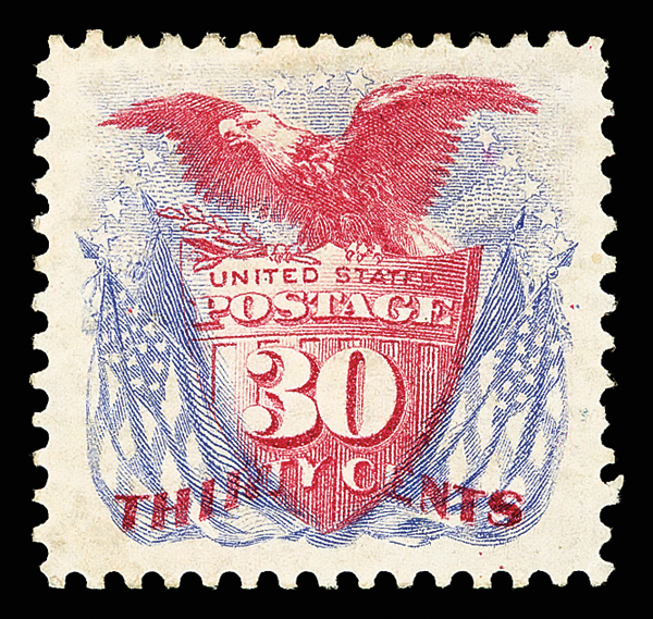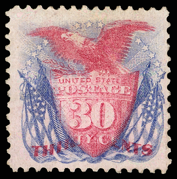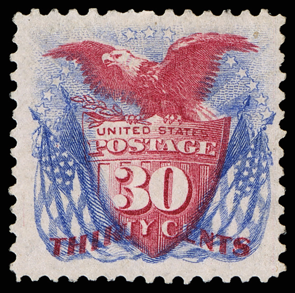 1869 (1875 Re-issue), 30¢ ultramarine & carmine (Scott 131), o.g., hinged, fresh and sound, near-perfectly centered