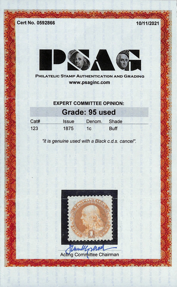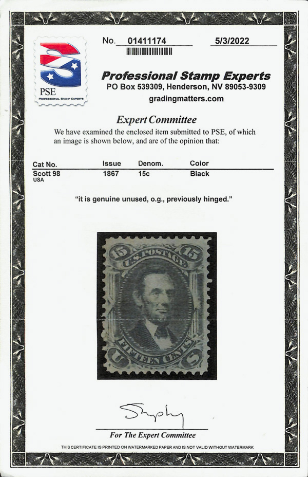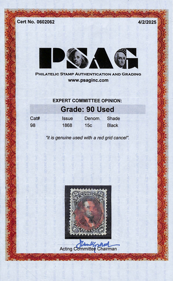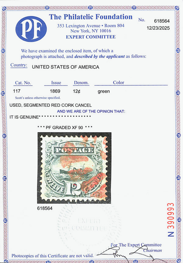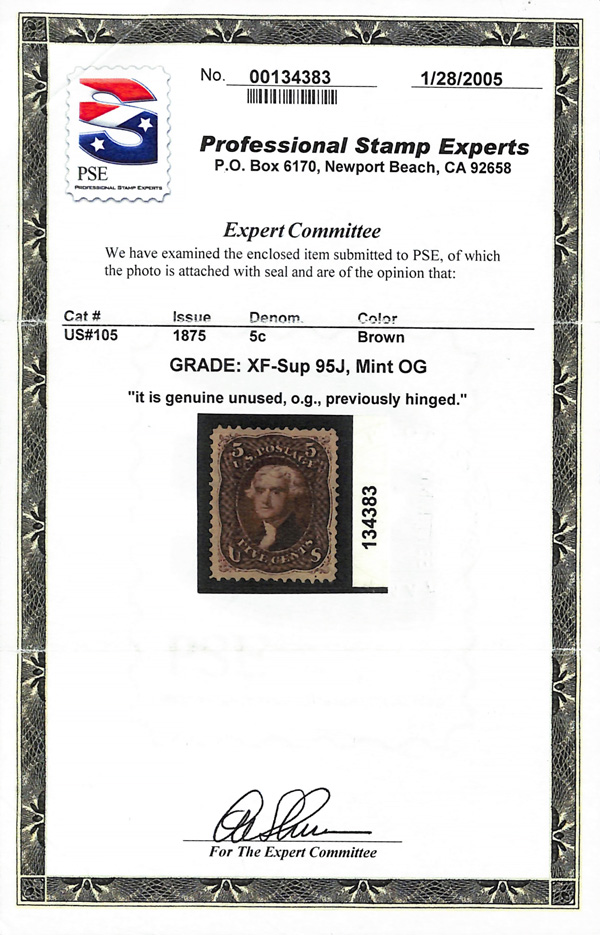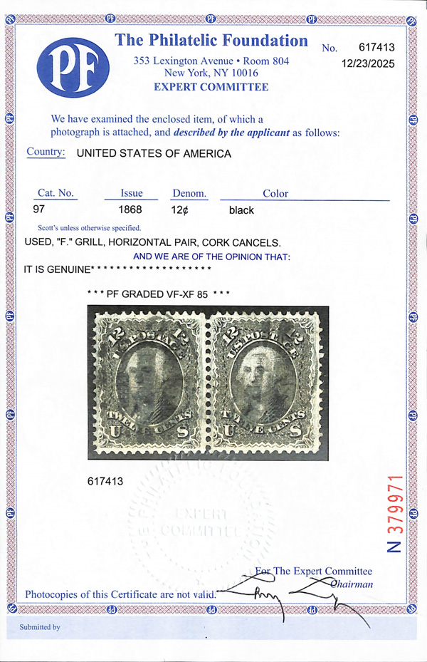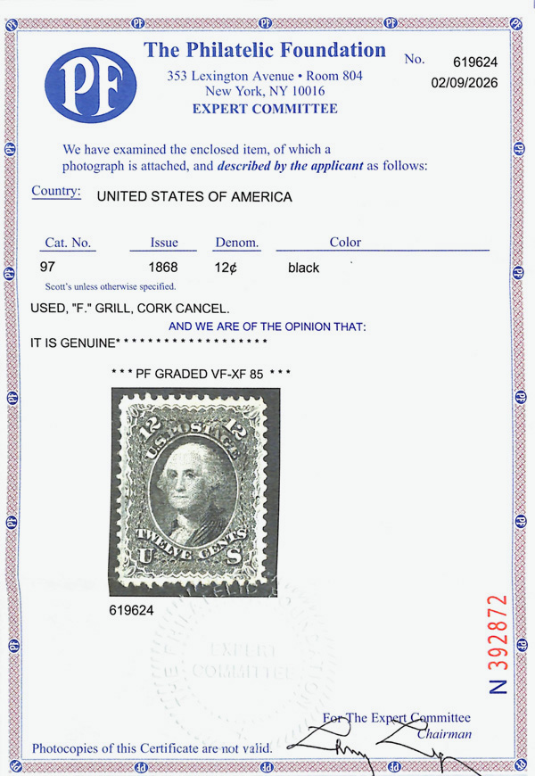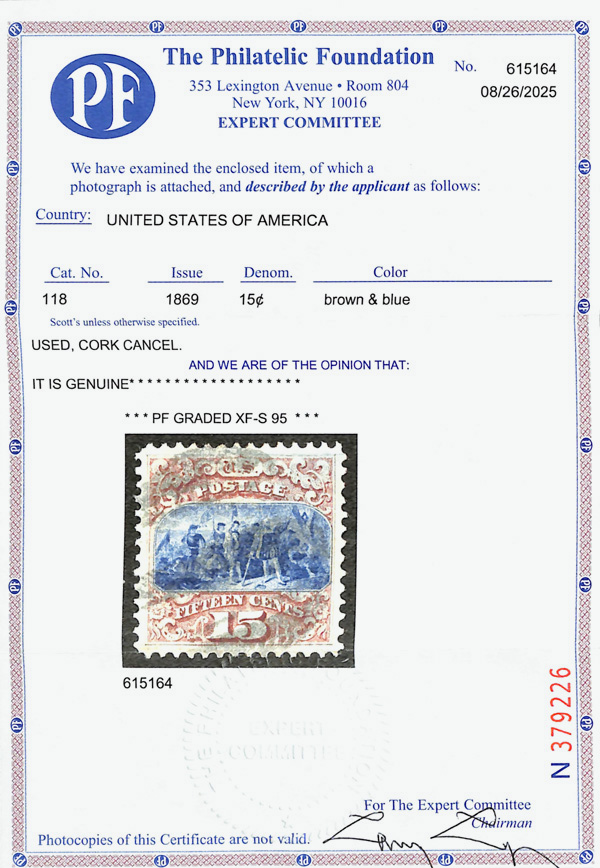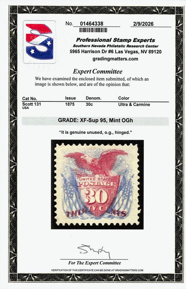 with crisp, clear colors, Extremely Fine to Superb, only 1535 sold; four stamps grade thus, with five 98s higher, in PSE's Population Report, with 1975 P.F. and 2026 P.S.E. certificates, the latter graded XF-SUP 95. SMQ XF-SUP 95;