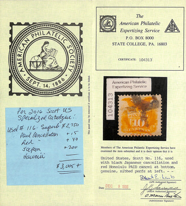 $9,000. Scott Stamp Values $8,500. (Image) (Image2)