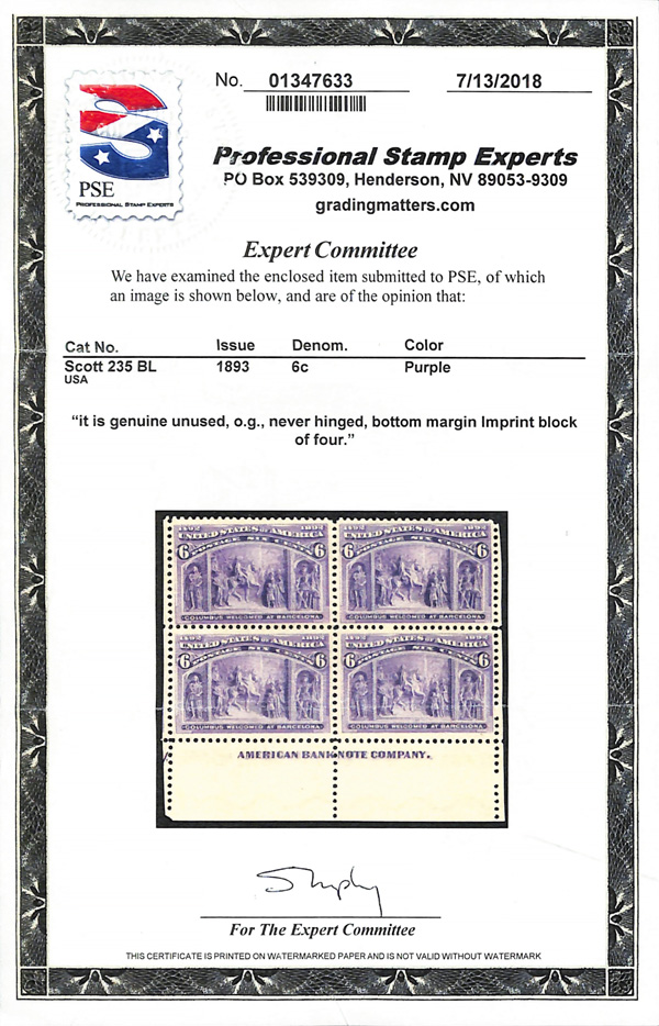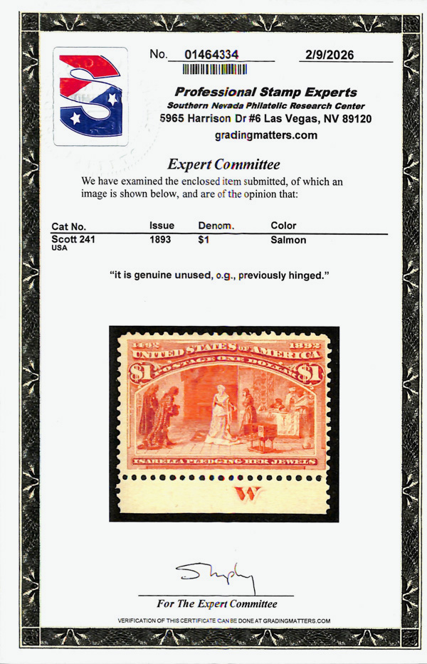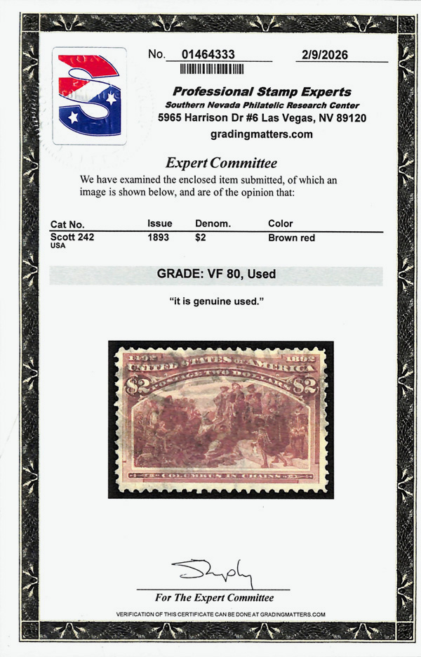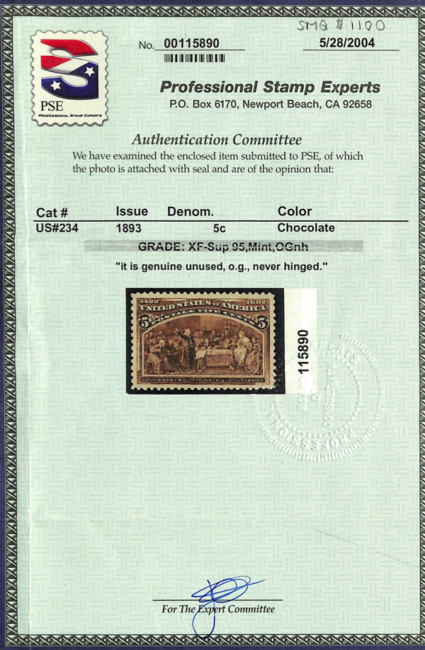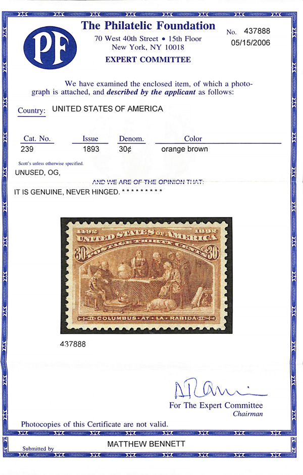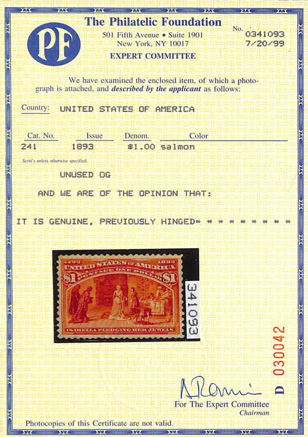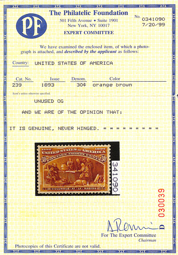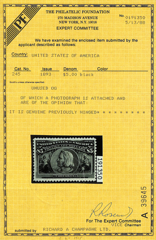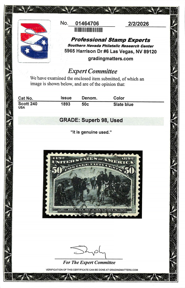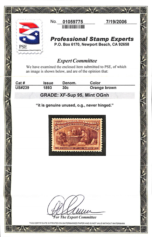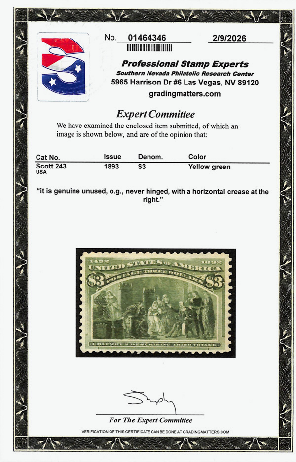 2002, 2014 and 2023 P.F. certificates, the last two graded XF-SUP 95. SMQ XF-SUP 95; $32,600. Scott Stamp Values $31,000.