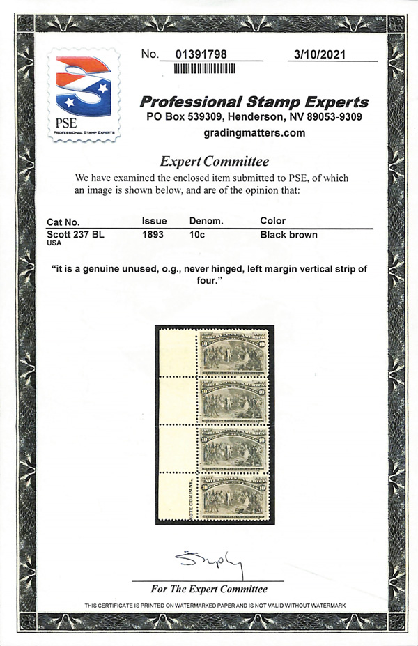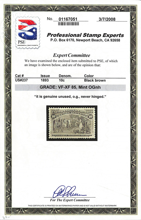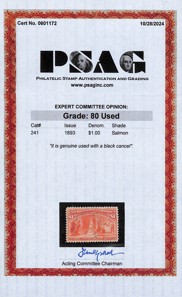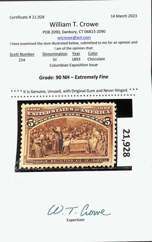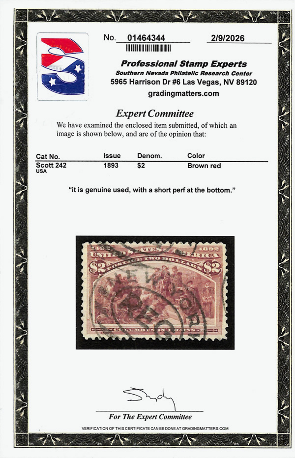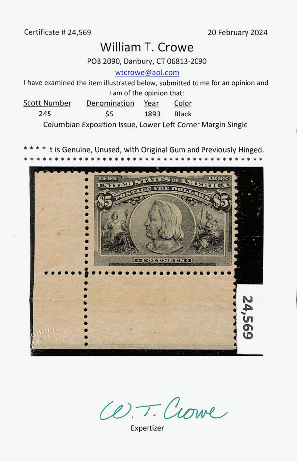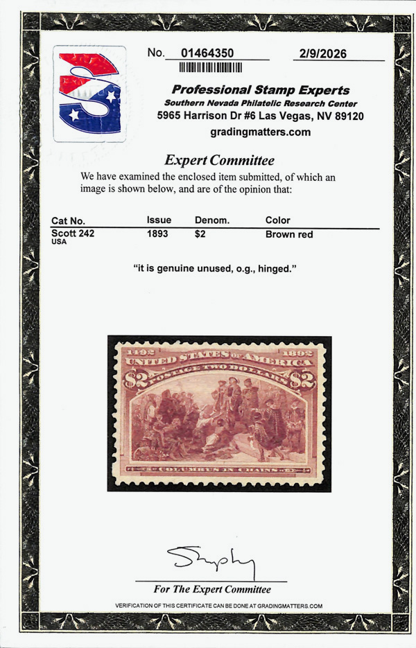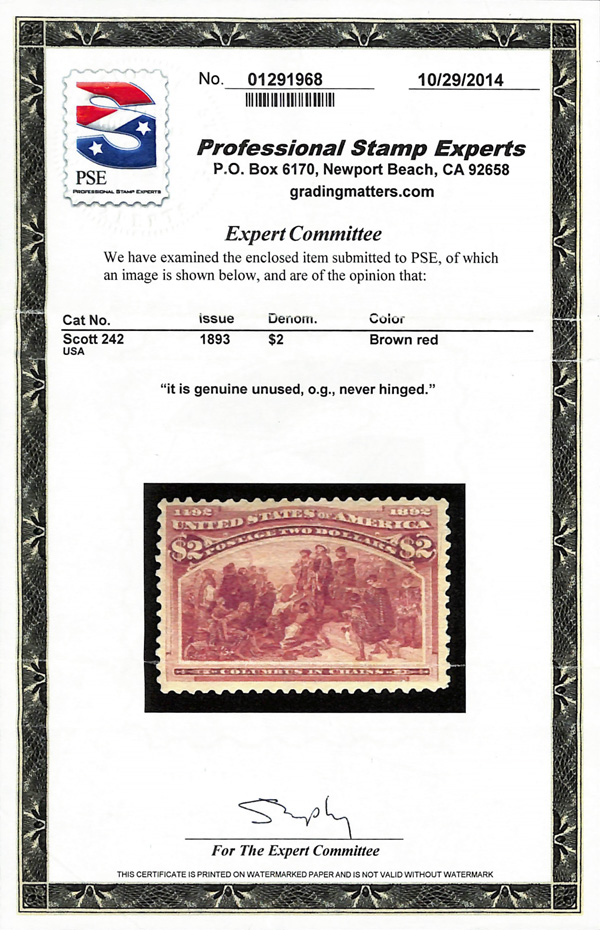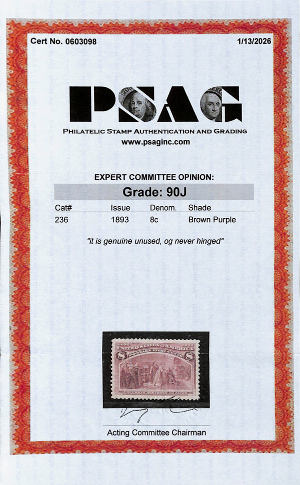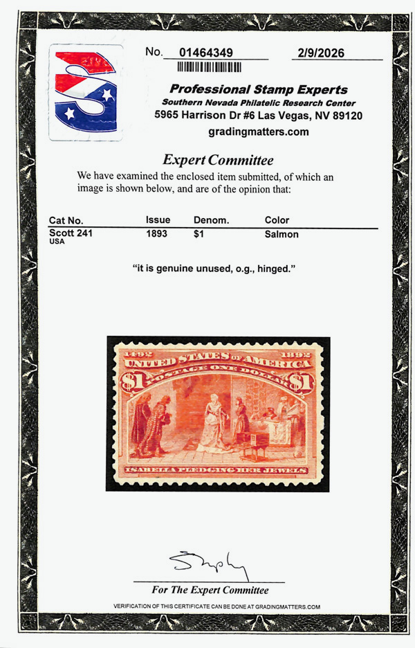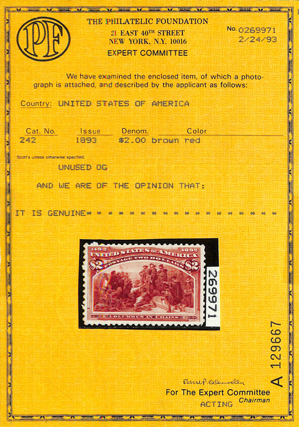 2002, 2014 and 2023 P.F. certificates, the last two graded XF-SUP 95. SMQ XF-SUP 95; $32,600. Scott Stamp Values $31,000.