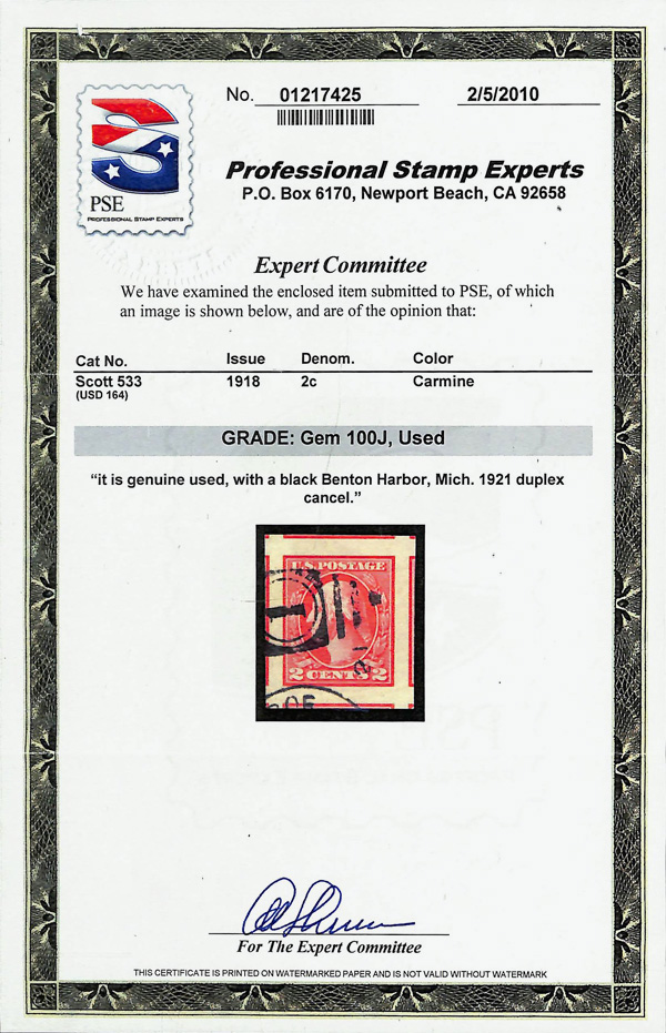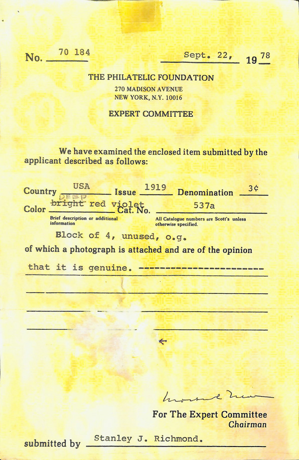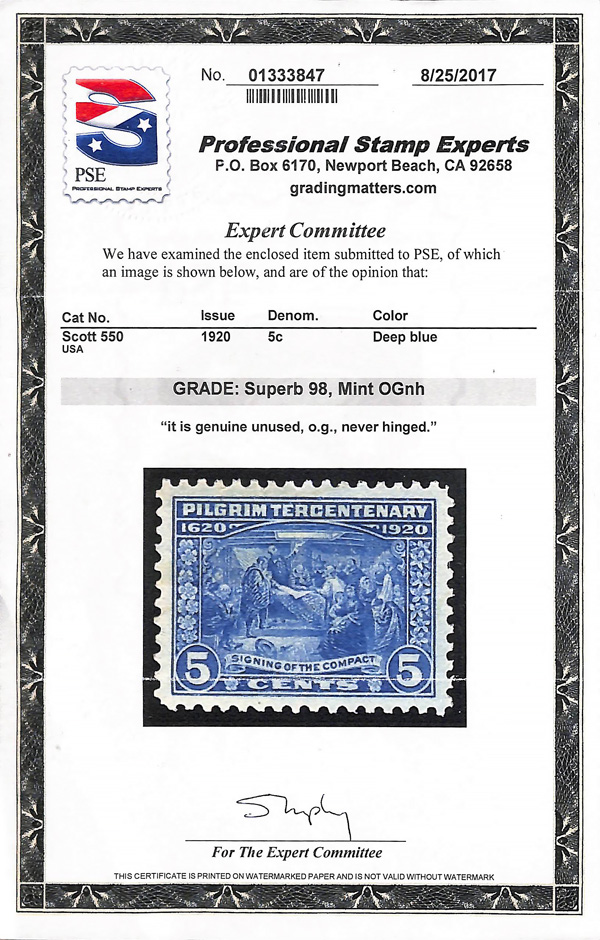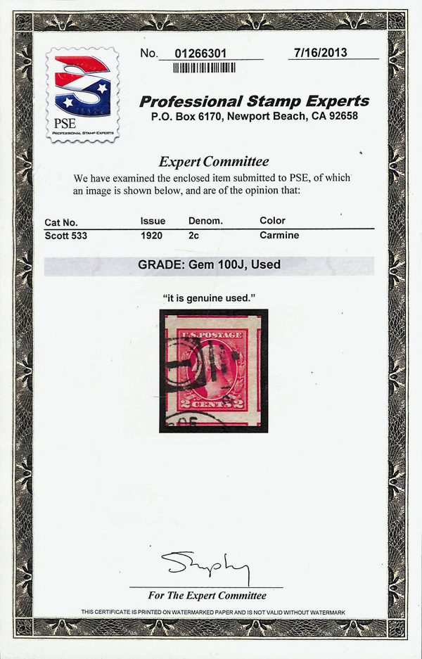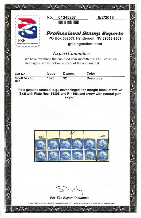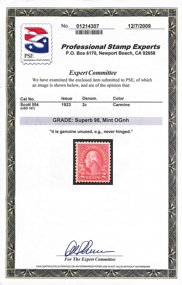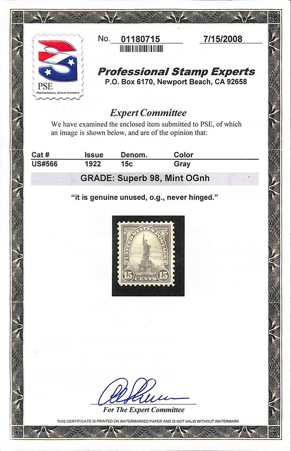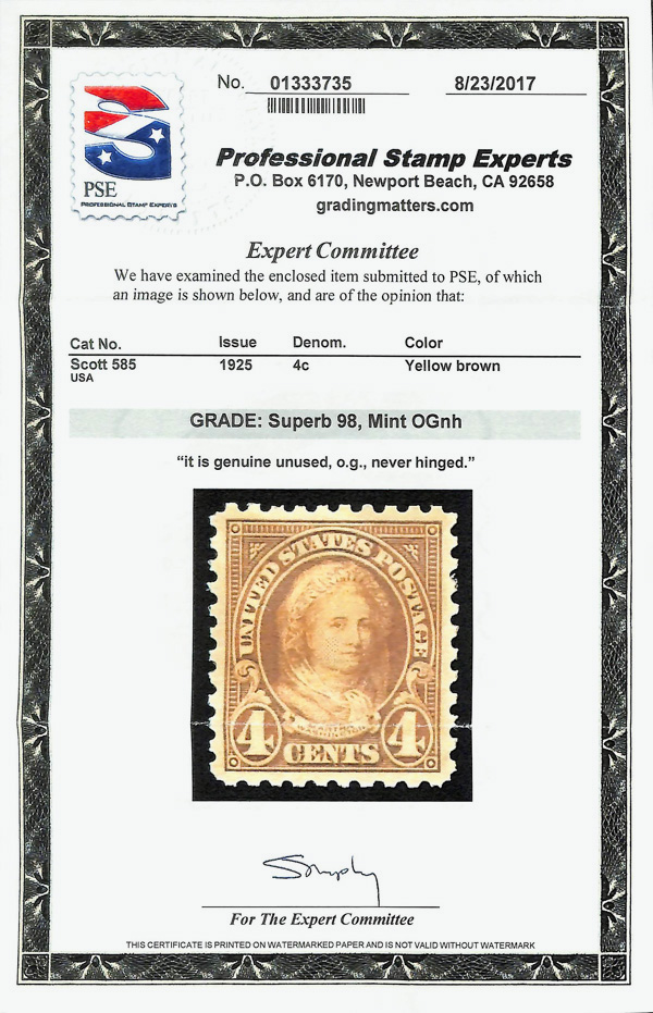 never hinged, a simply magnificent item, Post Office fresh and sound with large, balanced margins all around; well worth grading, Superb, with 2002 P.F. certificate. Scott $9,000. (Image) (Image2)